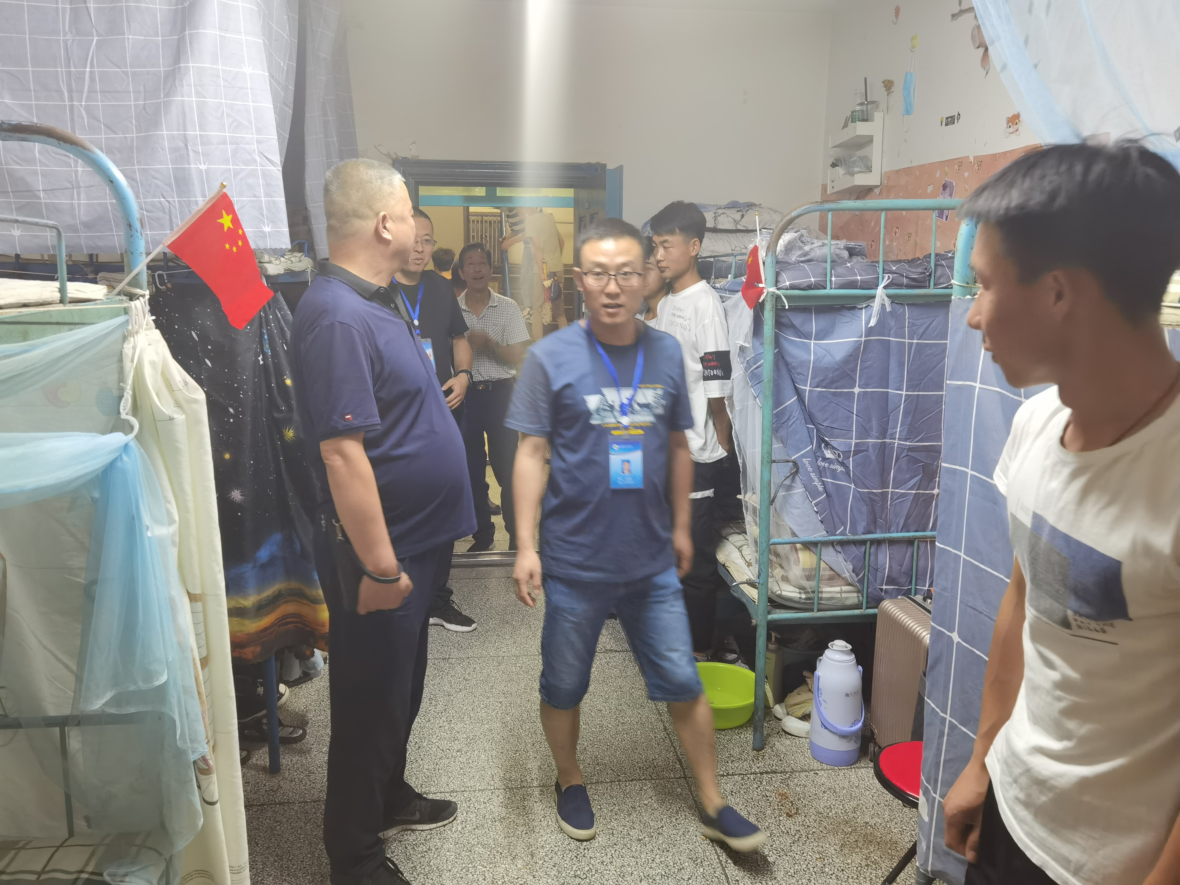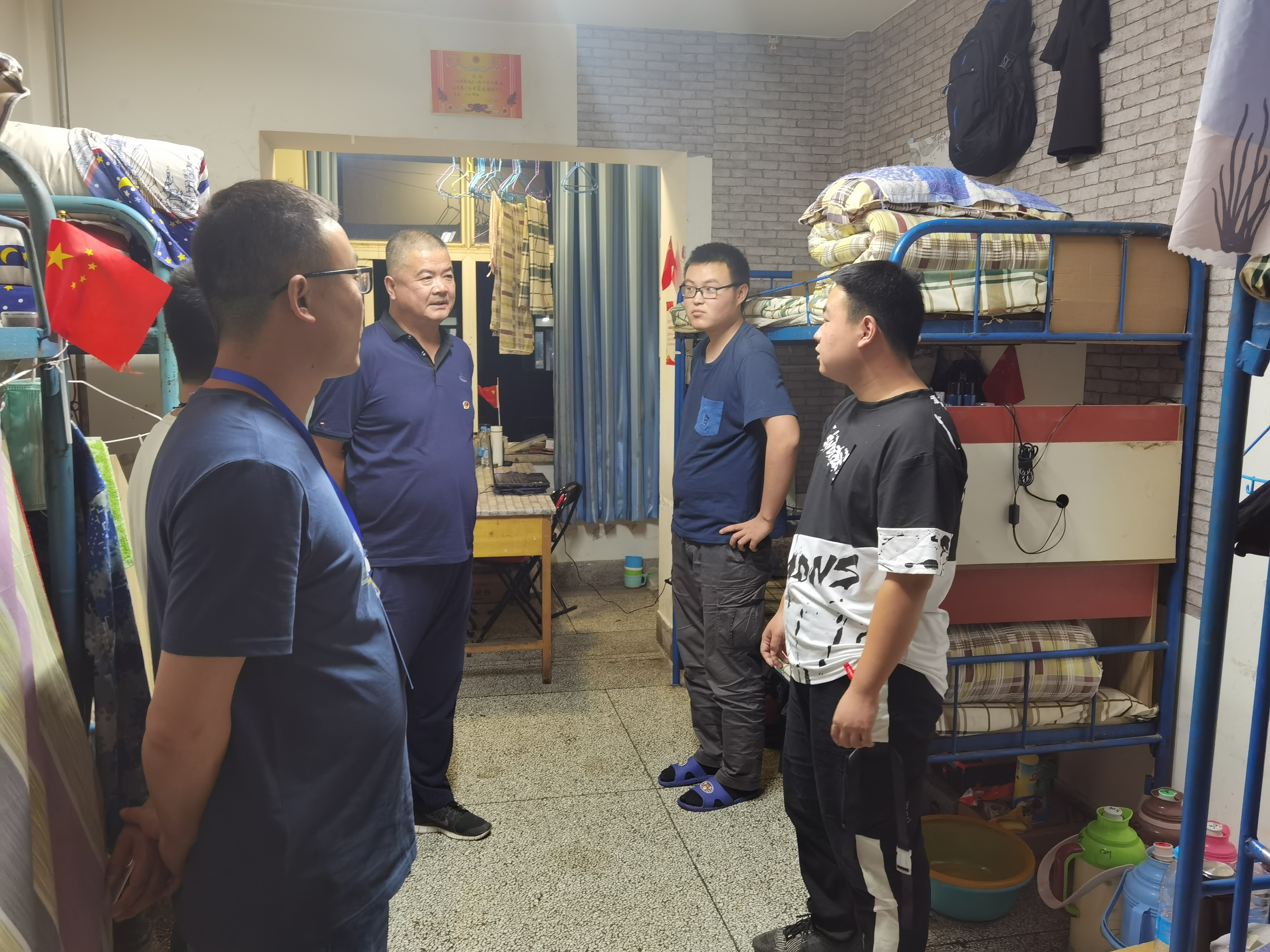 ? 6月26日晚,學(xué)院副院長(zhǎng)王守云,保衛(wèi)處處長(zhǎng)王政,學(xué)工處副處長(zhǎng)高鵬堂,教師姚斌一行深入我系學(xué)生宿舍,實(shí)地視察和慰問(wèn)我系返校學(xué)生生活狀態(tài)。