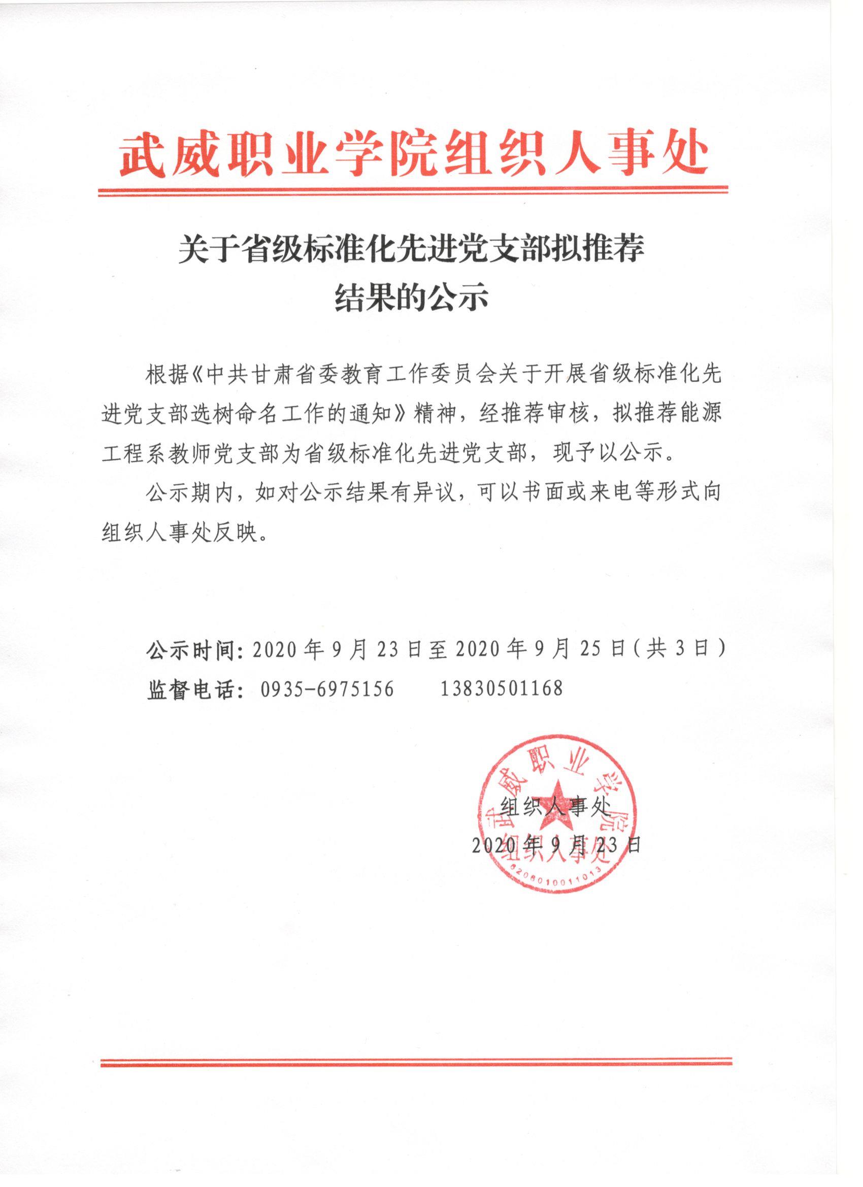 關(guān)于省級標(biāo)準(zhǔn)化先進(jìn)黨支部擬推薦結(jié)果的公示