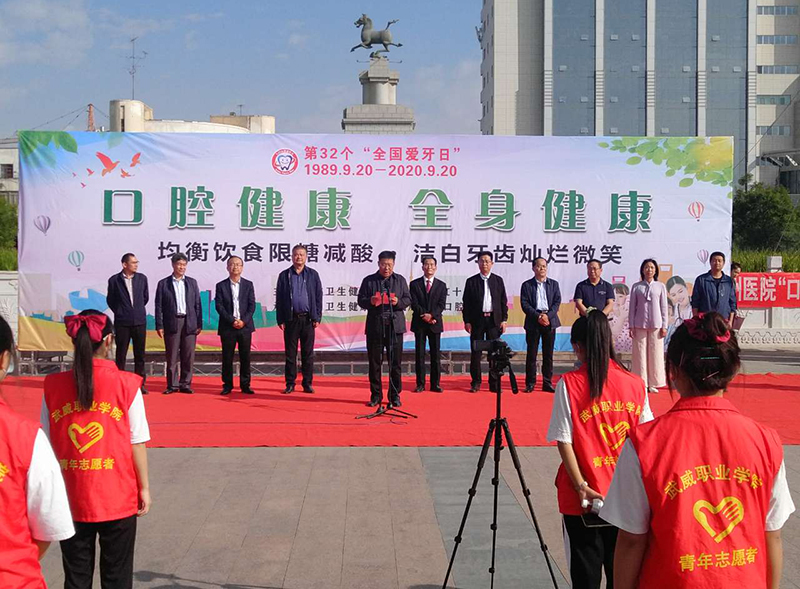 2020年9月20日是第32個“全國愛牙日”,為進一步普及口腔健康知識,結(jié)合今年全國愛牙日“口腔健康,全身健康”的主題,9月20日上午,由武威市衛(wèi)生健康委員會、武威市紅十字協(xié)會牽頭在文化廣場組織開展了“9.20全國愛牙日”主題宣傳活動。學院黨委委員、副院長王守云、醫(yī)學技術(shù)學院黨總支書記黃文源及醫(yī)學技術(shù)學院100多名口腔醫(yī)學技術(shù)專業(yè)學生參加了志愿服務(wù)活動。