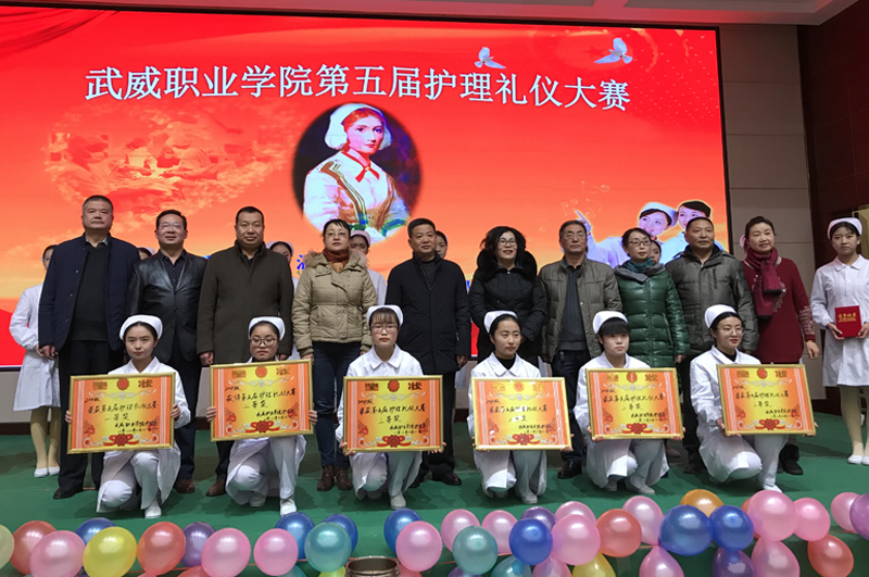 為弘揚(yáng)南丁格爾精神,強(qiáng)化護(hù)生禮儀修養(yǎng),推進(jìn)護(hù)理專業(yè)深層次內(nèi)涵式發(fā)展,助推我市文明城市建設(shè),12月21日,在大學(xué)生活動(dòng)中心菁英廳舉辦了“武威職業(yè)學(xué)院第五屆護(hù)理禮儀大賽”。學(xué)院黨委書記、院長趙明、學(xué)院副院長田迎春、院工會(huì)主席金玉龍、教務(wù)處處長仲生仁、學(xué)生工作處處長王守云、招生就業(yè)處處長蔡柱山、科研處處長張玉琴、圖書館館長黃雪梅、電子信息黨總支書記袁青年應(yīng)邀出席本次活動(dòng),護(hù)理系300多名師生觀看了本次比賽。