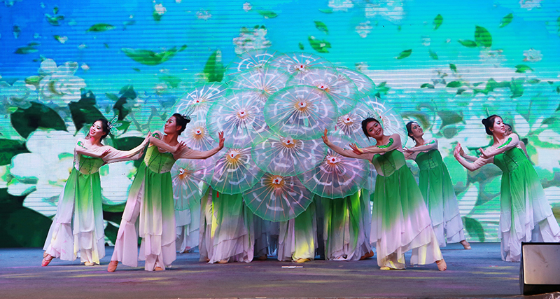 學(xué)院大學(xué)生藝術(shù)團(tuán)推送的節(jié)目詩(shī)朗誦《向祖國(guó)報(bào)告》和舞蹈《茉莉花開》參加了文藝匯演。《向祖國(guó)報(bào)告》表現(xiàn)了我院青年昂揚(yáng)向上的風(fēng)采,表達(dá)了新時(shí)代青年不忘初心,繼往開來(lái),為實(shí)現(xiàn)中國(guó)夢(mèng)而奮斗的青春理想和堅(jiān)定信念。魯芬霞老師指導(dǎo)的《茉莉花開》,姑娘們靈動(dòng)的身姿傾情獻(xiàn)舞,整個(gè)畫面美輪美奐,展現(xiàn)了中國(guó)舞蹈的獨(dú)特魅力,得到了觀眾的一直好評(píng)。