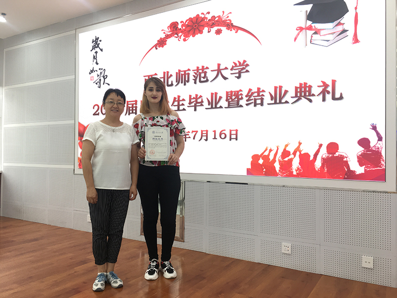 畢業(yè)典禮在留學生視頻播放中開始,視頻內(nèi)容真實,情真意切,如實記錄了留學生在華學習、生活的點點滴滴,展示了“一帶一路”合作倡議下教育對外開放的成果。西北師范大學國際文化交流學院書記李東海宣讀結業(yè)生名單,我院19級5名留學生赫然在列。西北師范大學國際合作與交流處處長王君朝向留學生祝詞,對留學生經(jīng)過努力學習、順利畢業(yè)表示衷心祝賀。留學生代表用流利漢語發(fā)言,既反映了漢語學習的效果,也表達了對漢語學習生活的留戀,對學校培育的感激,對中國政府和中國人民對外友好的真心感謝。留學生在激動喜悅的心情中領取了結業(yè)證書及紀念品。