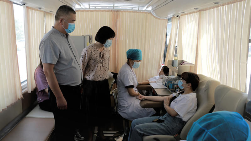 為發(fā)揚(yáng)大學(xué)生奉獻(xiàn)精神,展現(xiàn)新時代大學(xué)生高尚的精神品格,增強(qiáng)大學(xué)生的道德修養(yǎng),7月2日至4日,學(xué)院團(tuán)委聯(lián)合武威市中心血站,在大學(xué)生活動中心開展義務(wù)獻(xiàn)血活動,500余名莘莘學(xué)子勇敢擼起袖子,獻(xiàn)出青春熱血。學(xué)院黨委委員、副院長王守云到現(xiàn)場指導(dǎo)工作并慰問獻(xiàn)血同學(xué)。