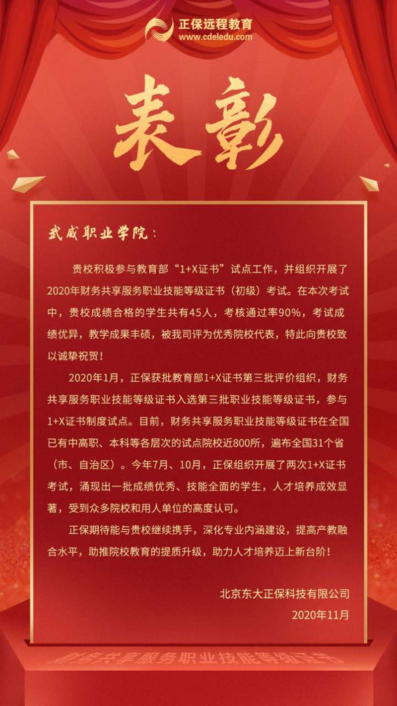 學院圓滿完成首個1+X證書制度試點考試工作并獲評為優(yōu)秀院校代表