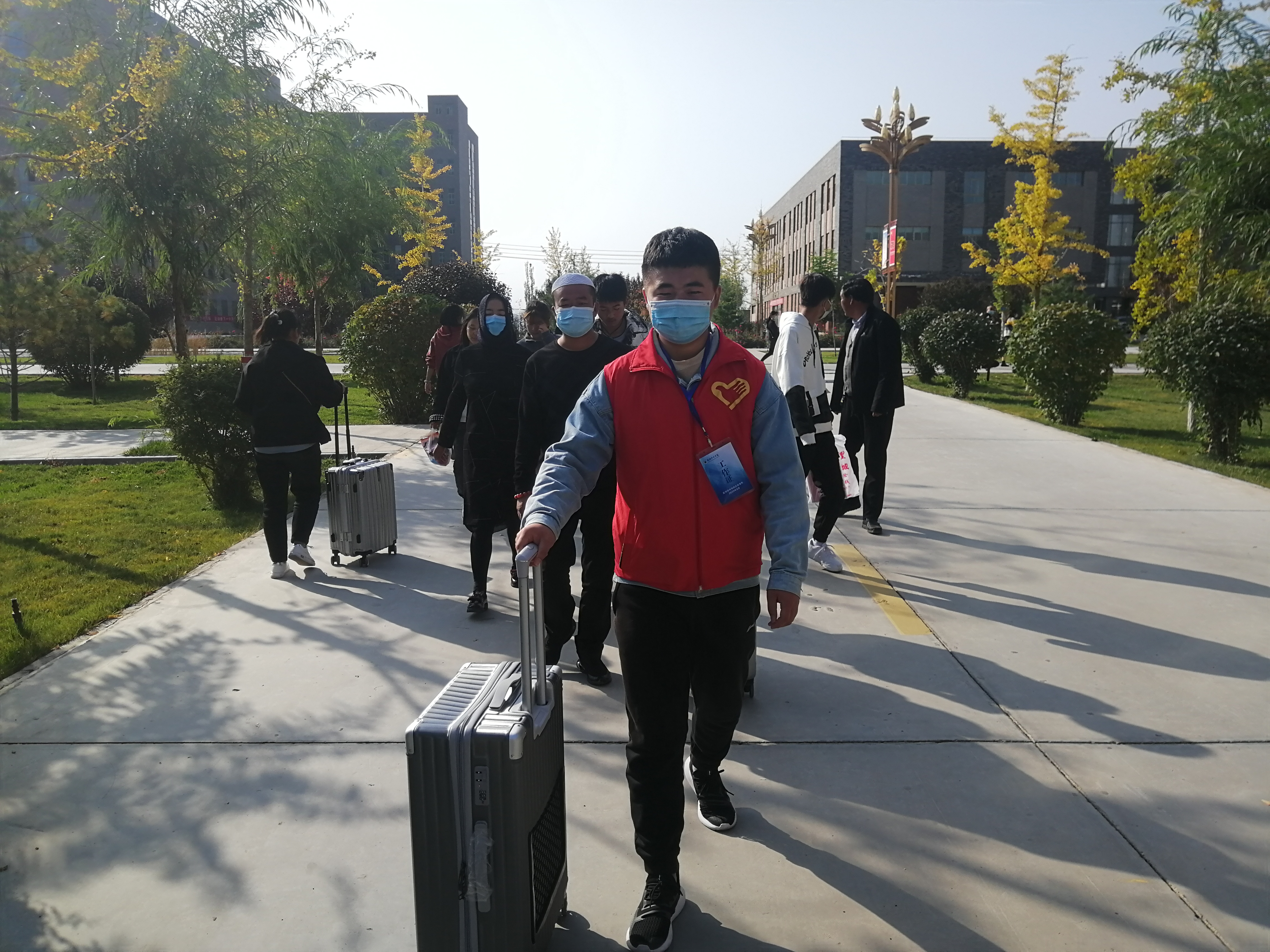 此次迎新活動由我系黨委書記黃文源老師和團(tuán)委書記石瑞山老師親自指導(dǎo),學(xué)生會成員與分團(tuán)委成員的配合,我系于2020年10月9日至11日展開了迎接新生活動,提著行李,推著箱子,那一張張青春的面容,充滿了對大學(xué)的好奇和向往。寢室樓里來回穿梭的身影是早在樓下等待幫新生搬動行李的志愿者,揮灑的汗水在幫助新生的喜悅下顯得無比閃耀。