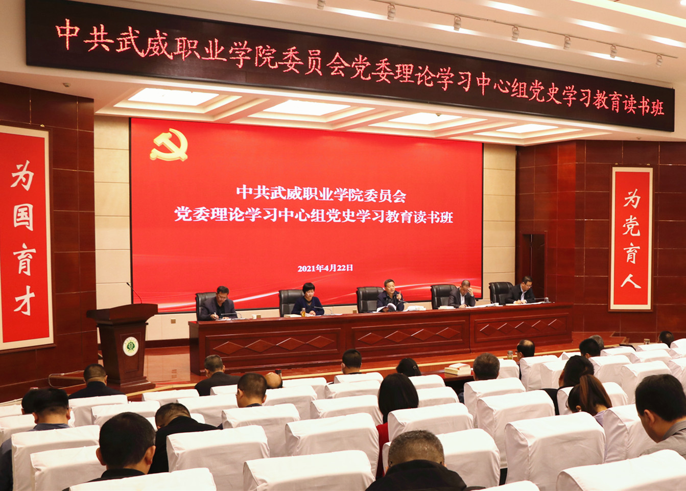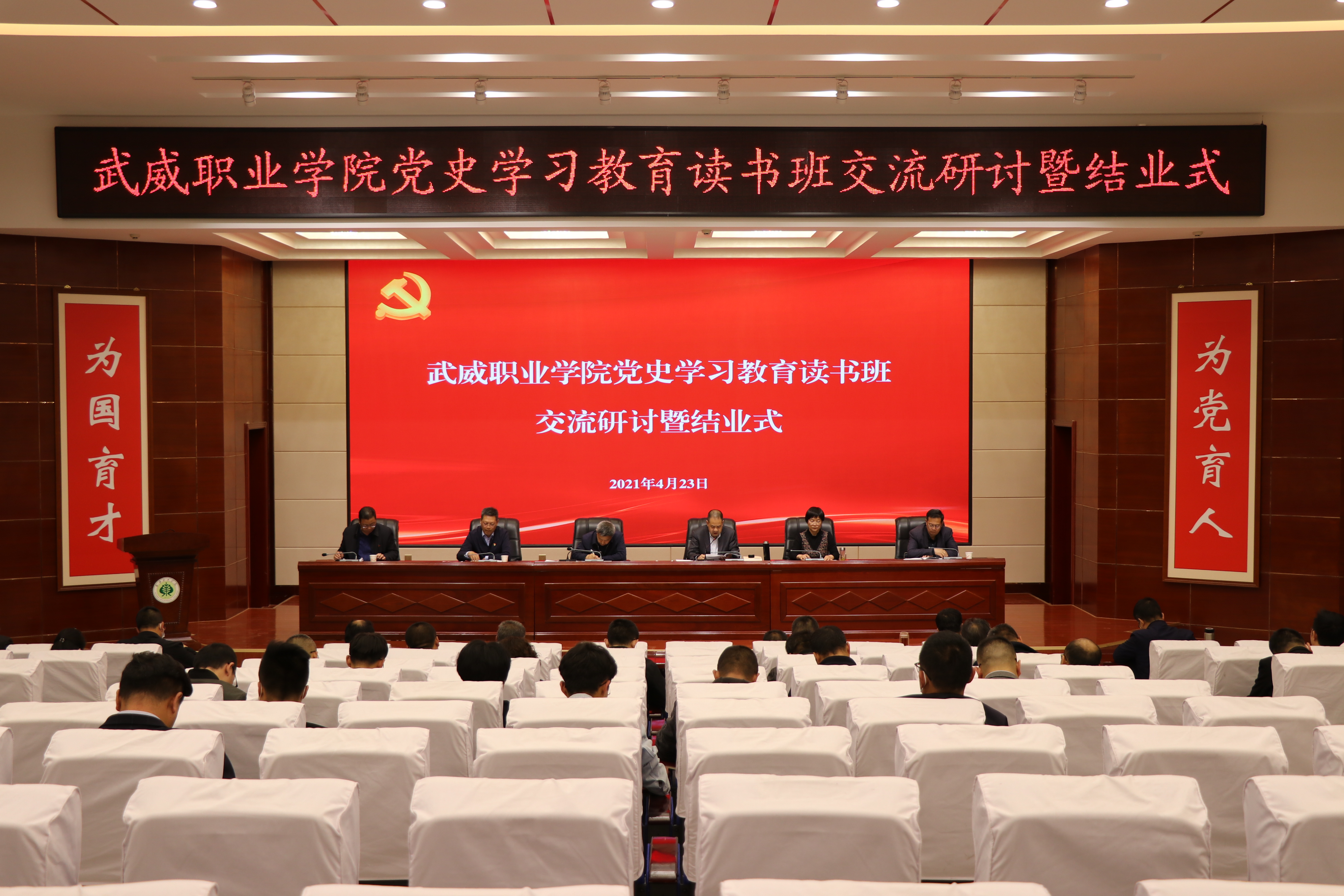 4月22日-23日,在第26個(gè)“世界讀書(shū)日”到來(lái)之際,武威職業(yè)學(xué)院黨委舉行了為期2天的黨史學(xué)習(xí)教育讀書(shū)班。學(xué)院領(lǐng)導(dǎo)班子成員、全體中層干部、各基層黨組織書(shū)記和支委委員、師生代表參加了讀書(shū)班集中學(xué)習(xí)。通過(guò)集中學(xué)習(xí)、專(zhuān)題輔導(dǎo)、經(jīng)典誦讀、知識(shí)競(jìng)賽、交流研討等形式引導(dǎo)黨員干部師生從百年黨史中學(xué)出堅(jiān)強(qiáng)黨性、學(xué)出堅(jiān)定信念、學(xué)出絕對(duì)忠誠(chéng)、學(xué)出使命擔(dān)當(dāng)。