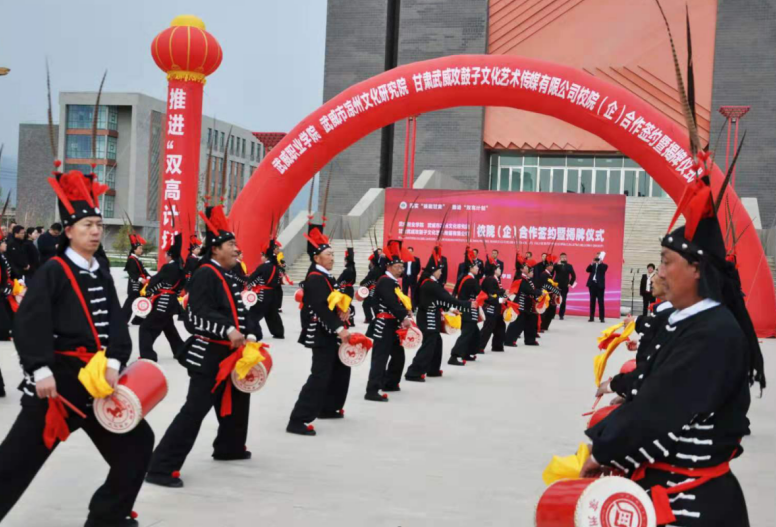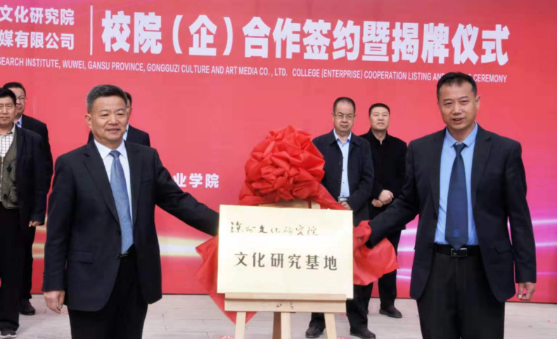 4月27日,學院與武威市涼州文化研究院、甘肅武威攻鼓子文化藝術傳媒有限公司“校(院)企戰(zhàn)略合作”簽約暨揭牌儀式在學院圖書館前廣場舉行。