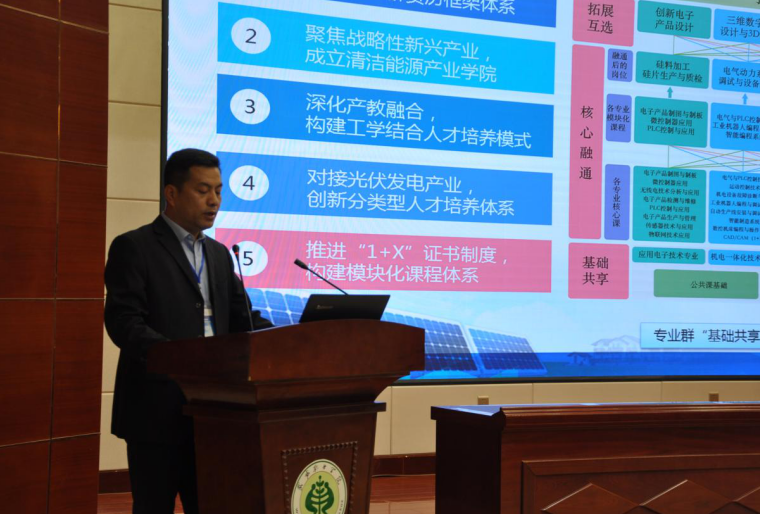 杭州瑞亞公司院校合作事業(yè)部總經(jīng)理桑寧如做了光伏電站運維1+X證書制度政策解讀,武威職業(yè)學(xué)院省級雙高計劃光伏工程技術(shù)高水平專業(yè)群負(fù)責(zé)人黃述杰匯報了專業(yè)群建設(shè)情況。