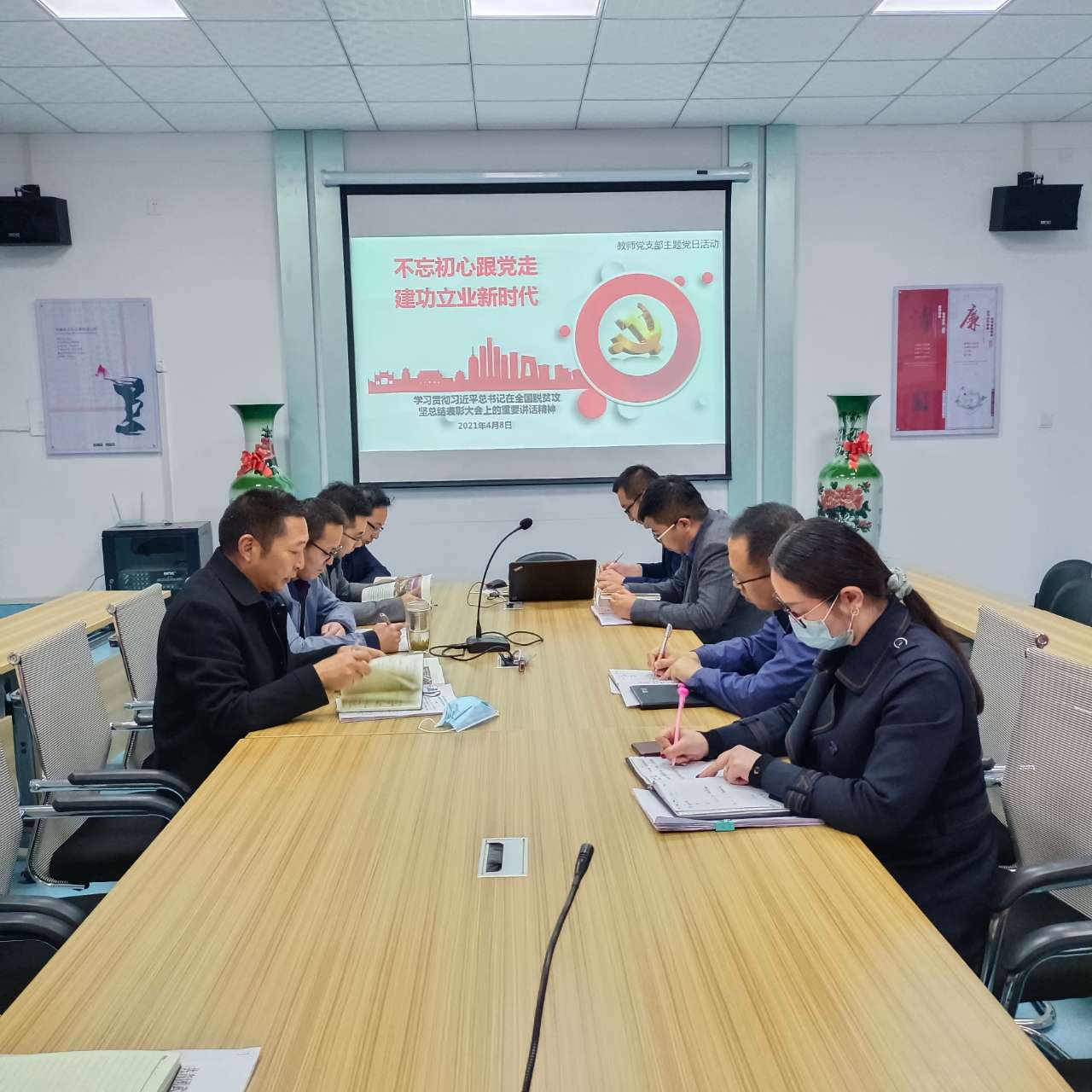 4月8日,電子信息工程系組織學習習近平總書記在全國脫貧攻堅表彰大會上的講話精神,全體教師黨員參加學習,電子信息工程系黨總支書記袁青年主持學習。