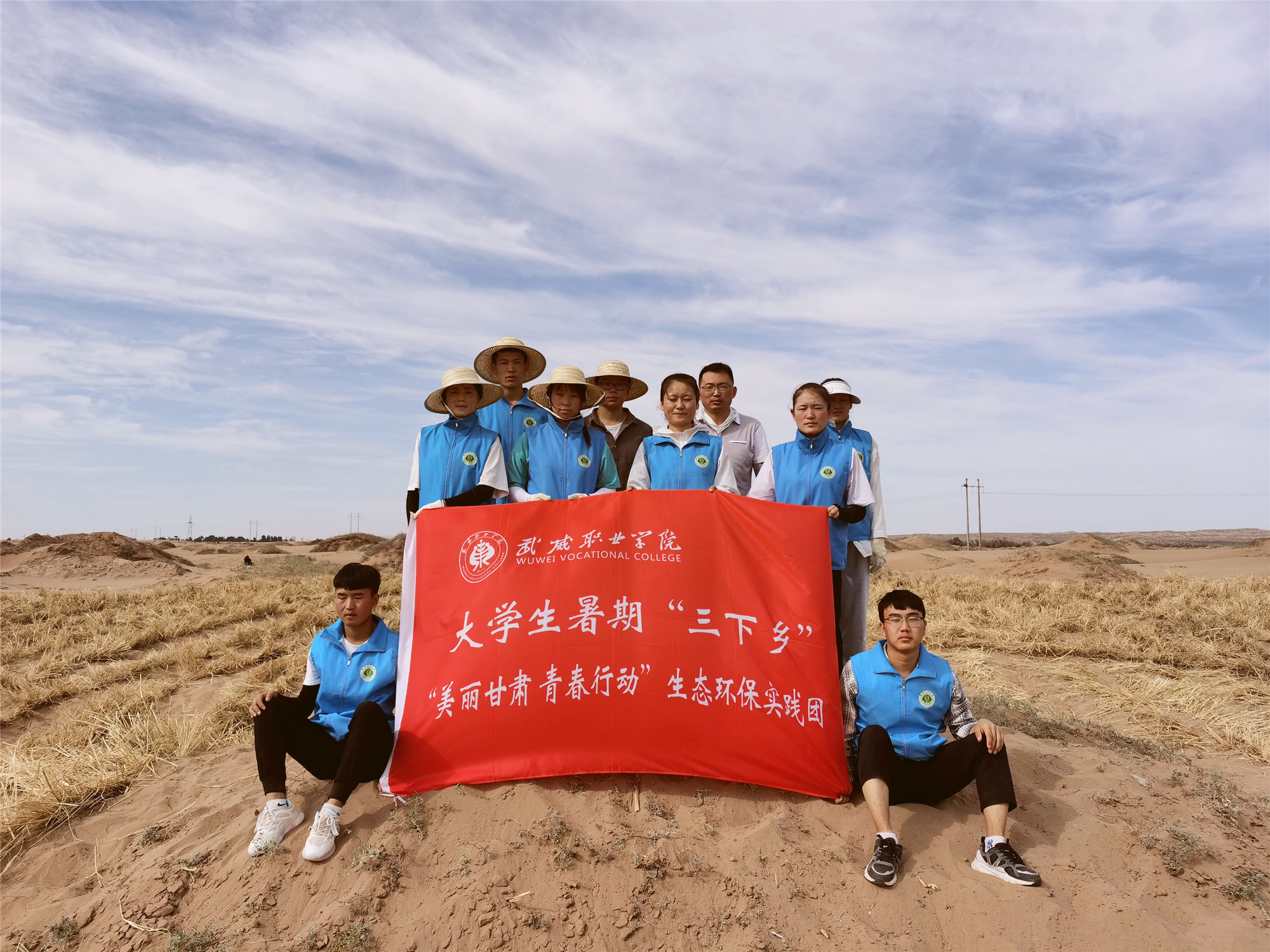 為深入學(xué)習(xí)貫徹習(xí)近平總書記生態(tài)文明建設(shè)重要戰(zhàn)略思想,引導(dǎo)和幫助學(xué)院青年學(xué)生積極融入武威市創(chuàng)建文明城市,以實際行動致力于荒漠化治理、踐行兩山理論。2021年7月15日至21日,在武威職業(yè)學(xué)院團(tuán)委、教學(xué)院系指導(dǎo)下,來自7個專業(yè)、1名留學(xué)生所組成的“美麗甘肅 青春行動”青少年生態(tài)環(huán)保行動暑期社會實踐小隊奔赴武威市三縣一區(qū)部分地區(qū)進(jìn)行“綠色夢想·戈壁荒漠‘智’富行動”暑期社會實踐。