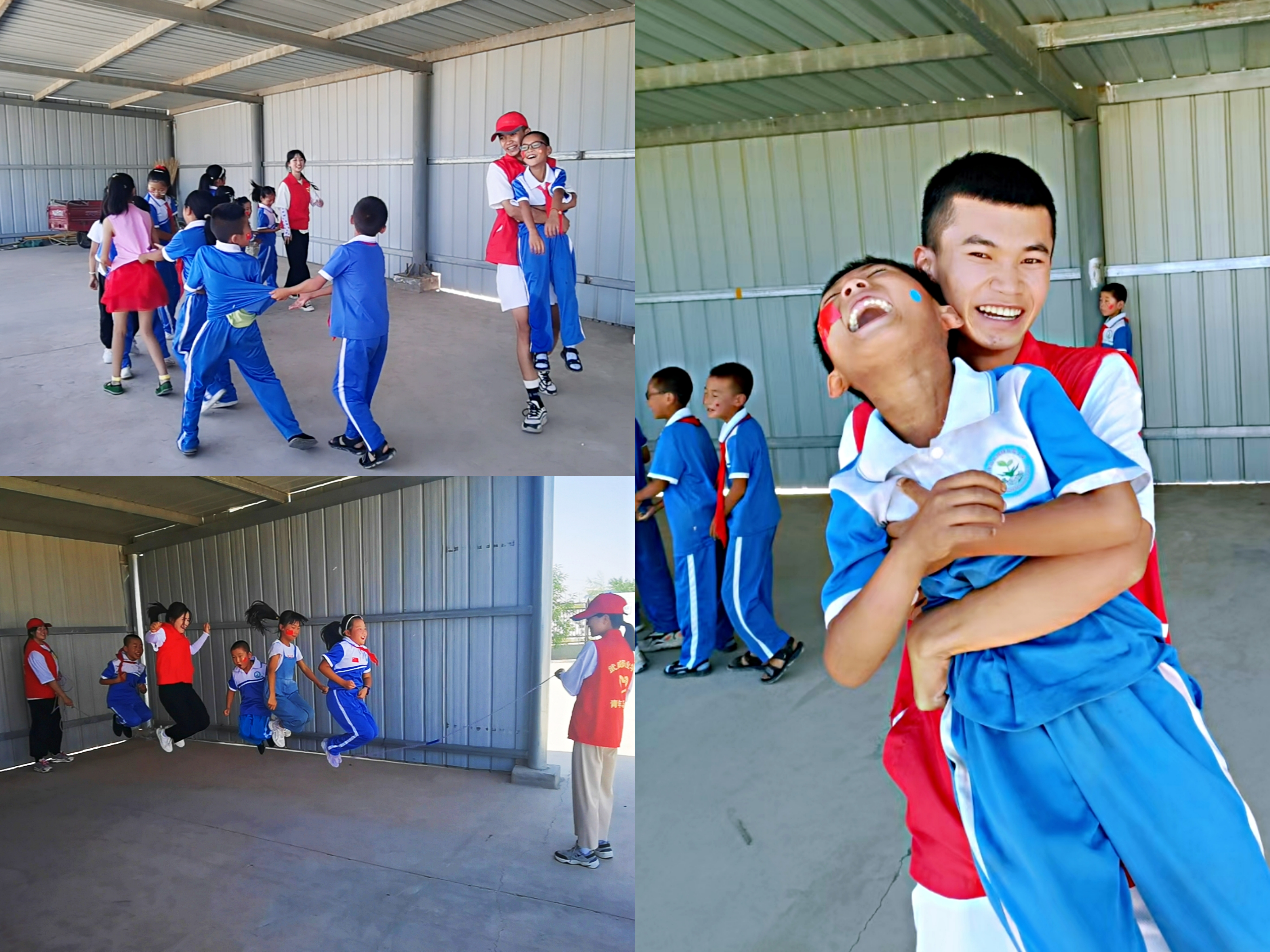隊員們和小朋友們一起玩了很多游戲,大家都沉浸在快樂之中,歡聲笑語響徹整個校園。