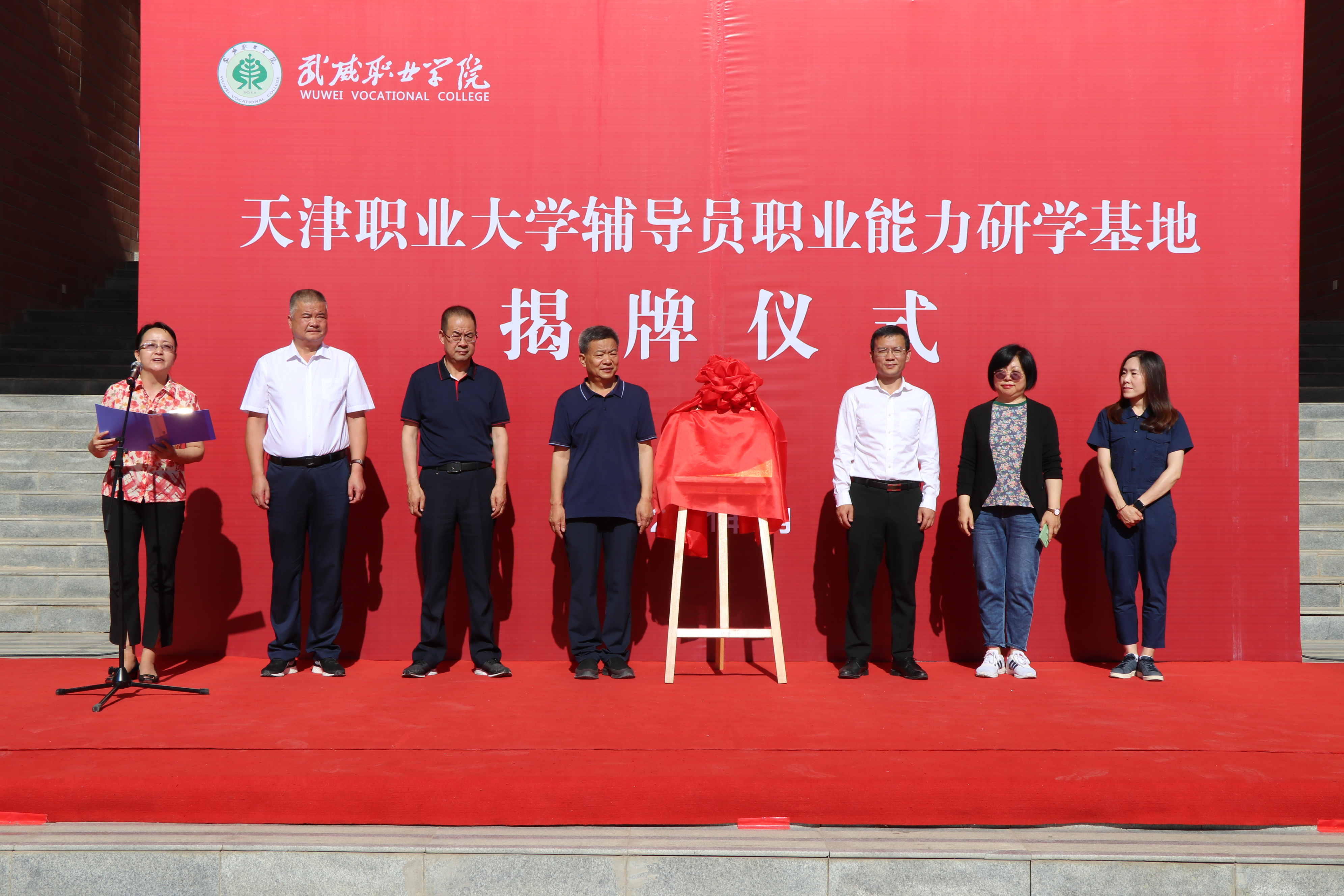 參觀結束后,在學生發(fā)展中心門口舉行天津職業(yè)大學輔導員職業(yè)能力研學基地揭牌儀式。天津職業(yè)大學與我院簽訂了《天津職業(yè)大學輔導員職業(yè)能力研學基地共建協(xié)議》,并互贈紀念品。通過研學基地共建,雙方相互借鑒在輔導員隊伍建設培養(yǎng)、學校德育工作的理念和做法,推進高校輔導員隊伍建設,加強兩校間深度合作,不斷提升育人質(zhì)量,構建新時代的高校德育工作格局。