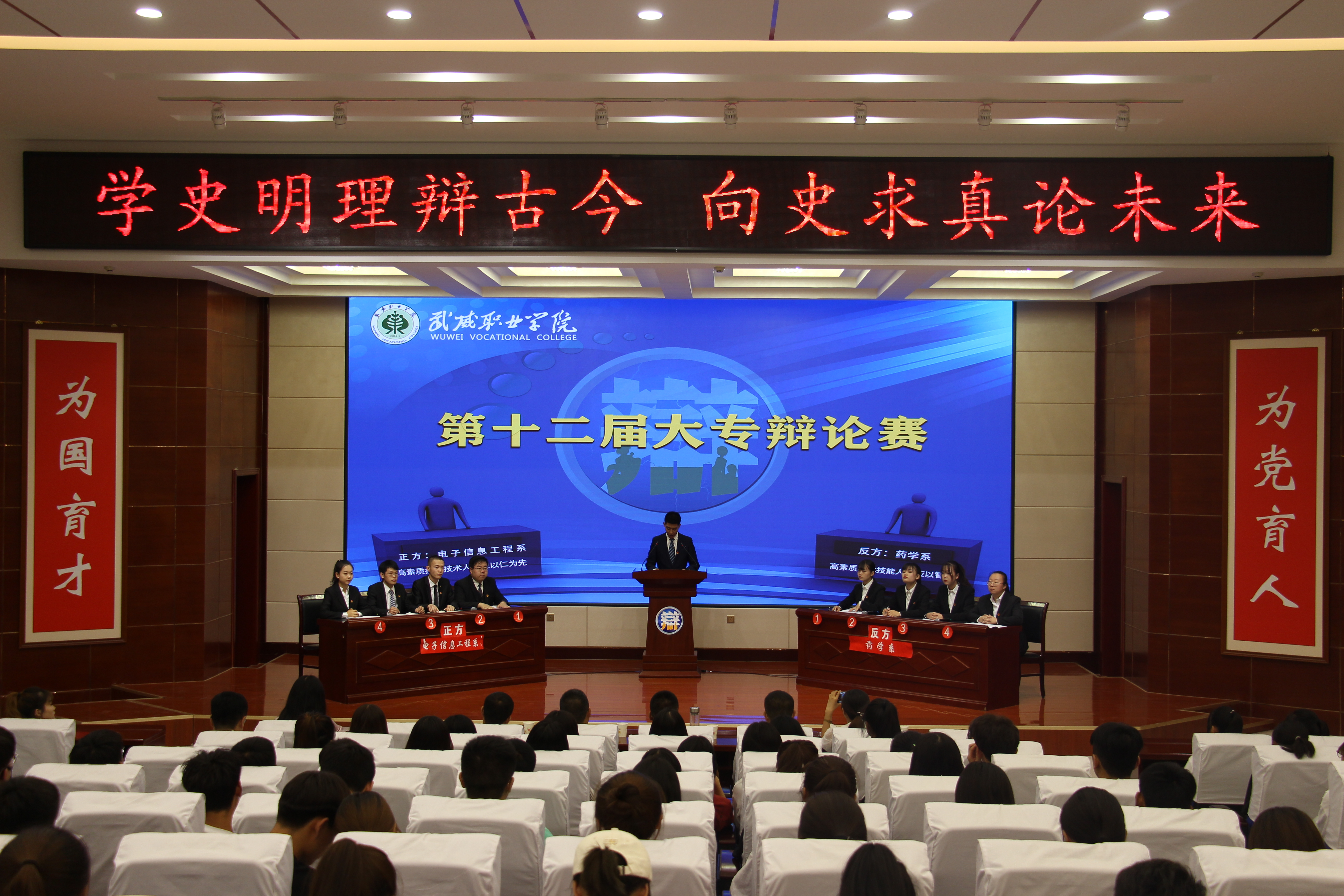 學(xué)史悟踐,思辨增信。第十二屆大專辯論賽正值全院師生深入開展黨史學(xué)習(xí)教育之際,此次大賽充分拓展校園文化活動的思政育人作用,旨在引導(dǎo)廣大青年聽黨話、感黨恩、跟黨走,秉持“厚德長技、守正創(chuàng)新”的校訓(xùn),自覺將“仁”與“智”、“知”與“行”緊密結(jié)合,辯世事求真學(xué)論未來,全面提高能力素質(zhì),努力成為新時代高素質(zhì)的技術(shù)技能人才和勞動者,為打造“技能甘肅”和“雙高院?!苯ㄔO(shè)貢獻(xiàn)力量。