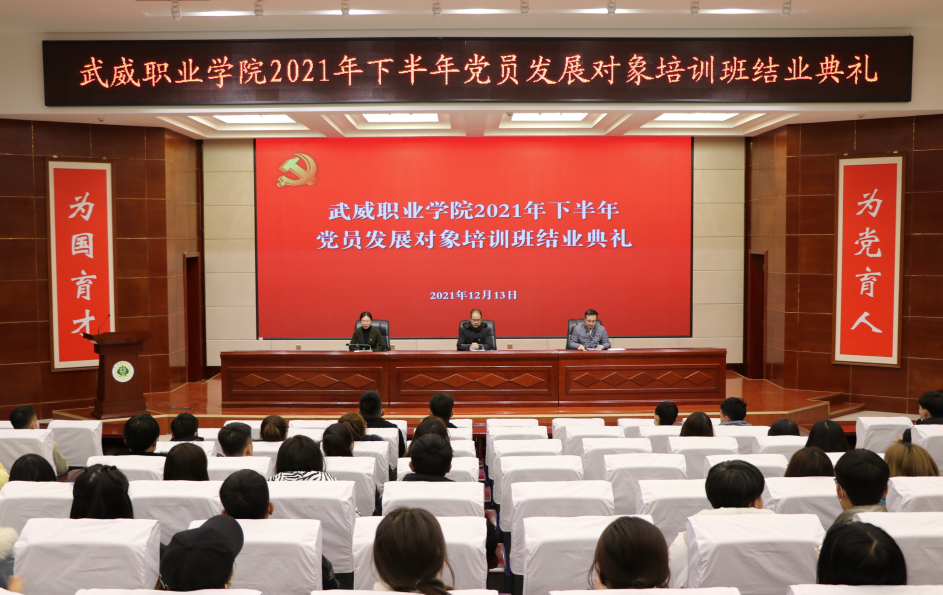 任陶宣讀了《中共武威職業(yè)學院委員會關(guān)于黨員發(fā)展對象培訓班結(jié)業(yè)情況的通報》,培訓班班主任、建筑工程系黨總支專職組織員呂雪玲宣讀了《2021年下半年黨員發(fā)展對象培訓班結(jié)業(yè)名單》。