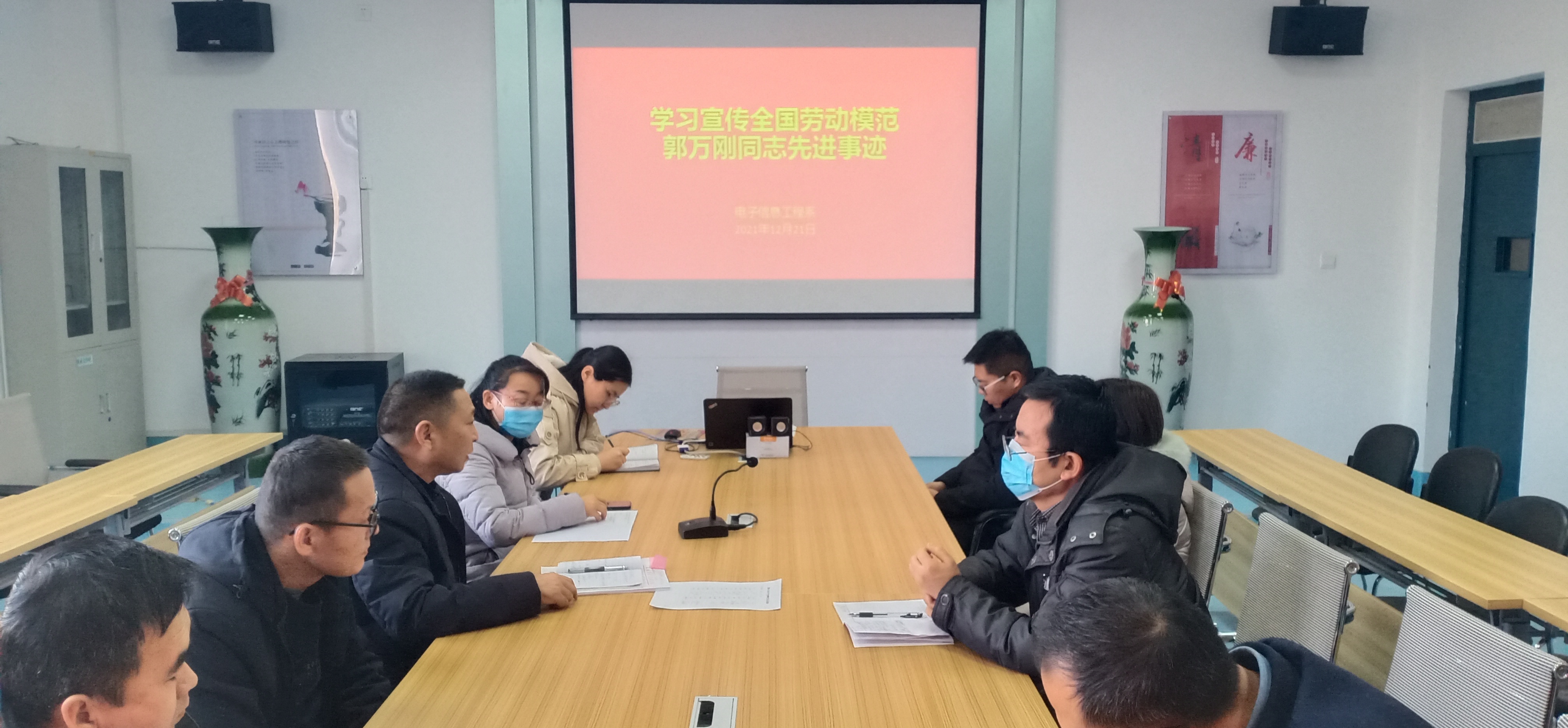 12月23日下午,電子信息工程系組織全體教師在明德樓409會議室學(xué)習(xí)全國勞動模范郭萬剛同志先進(jìn)事跡。