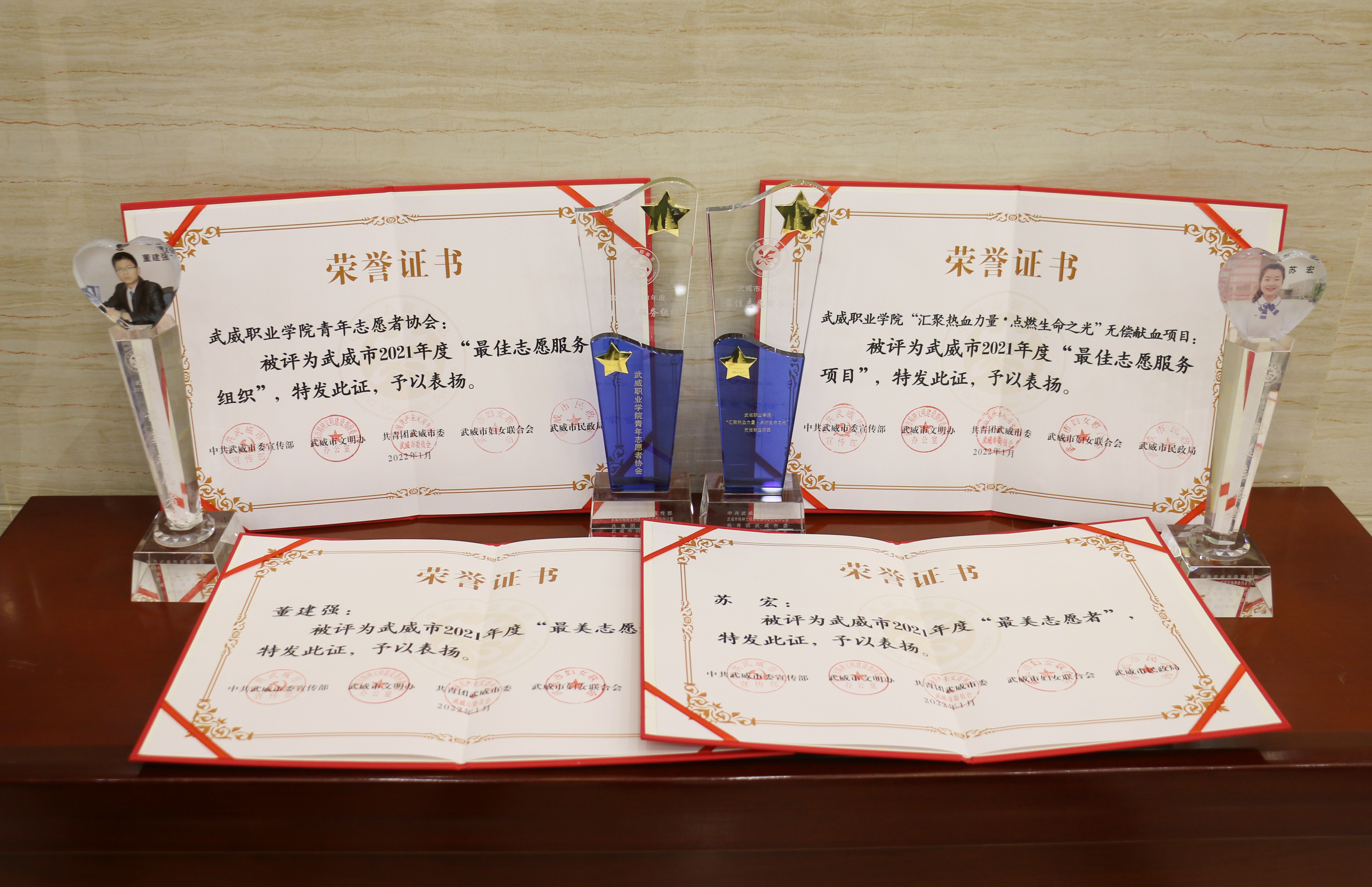 啟動(dòng)儀式上,對(duì)獲得武威市2021年度“最美志愿者”“最佳志愿服務(wù)組織”“最佳志愿服務(wù)項(xiàng)目”“最美志愿服務(wù)社區(qū)”稱號(hào)的集體和個(gè)人頒發(fā)了證書和獎(jiǎng)杯。我校青年志愿者協(xié)會(huì)獲得“最佳志愿服務(wù)組織”榮譽(yù)稱號(hào),“匯聚熱血力量·點(diǎn)燃生命之光”無償獻(xiàn)血志愿服務(wù)項(xiàng)目獲得“最佳志愿服務(wù)項(xiàng)目”榮譽(yù)稱號(hào),兩名師生獲得“最美志愿者”榮譽(yù)稱號(hào)。