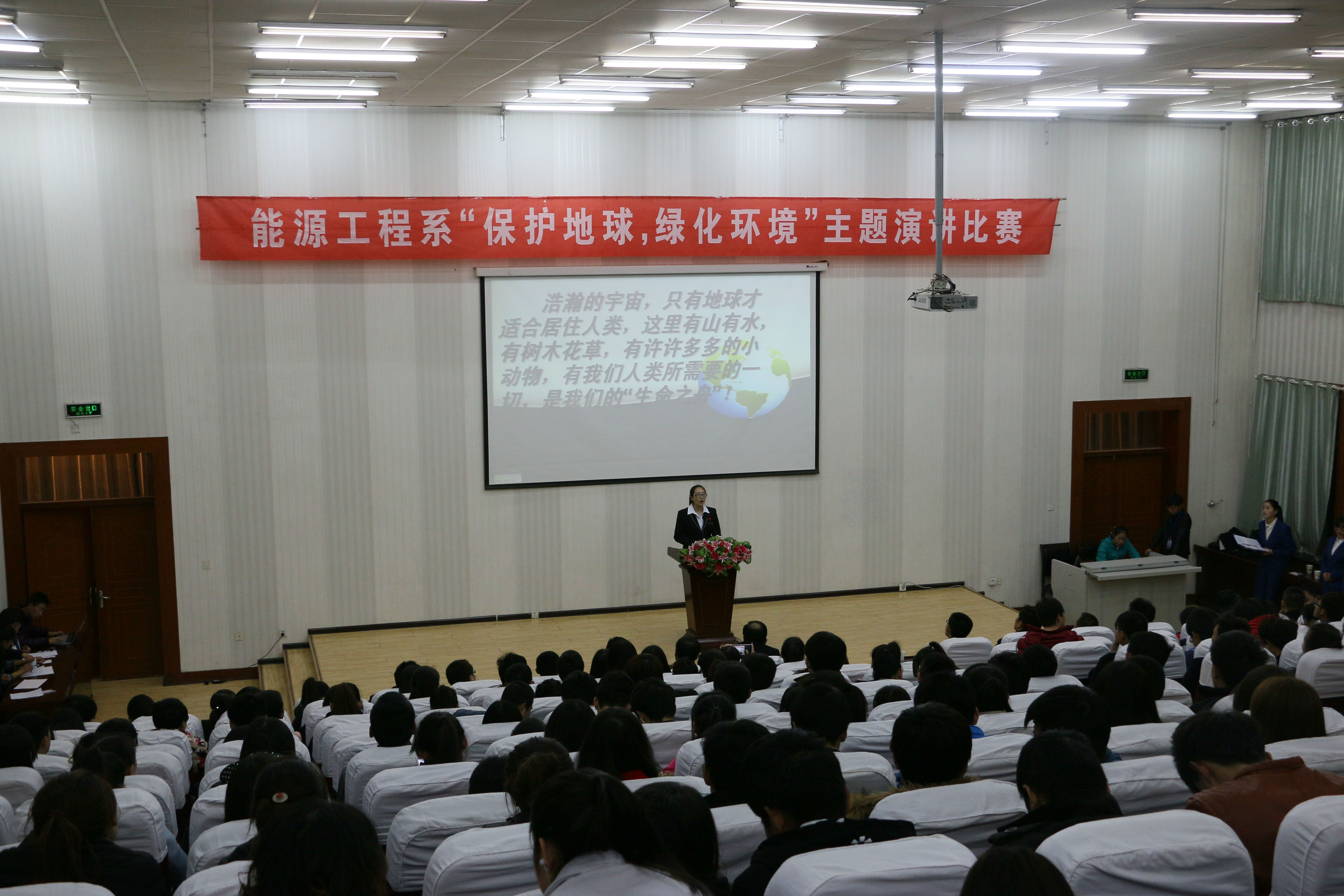 3月15日晚能源工程系在尚德樓正德廳舉辦了“保護(hù)地球,綠化環(huán)境”演講比賽決賽,參加此次活動(dòng)的有能源工程系全體師生。