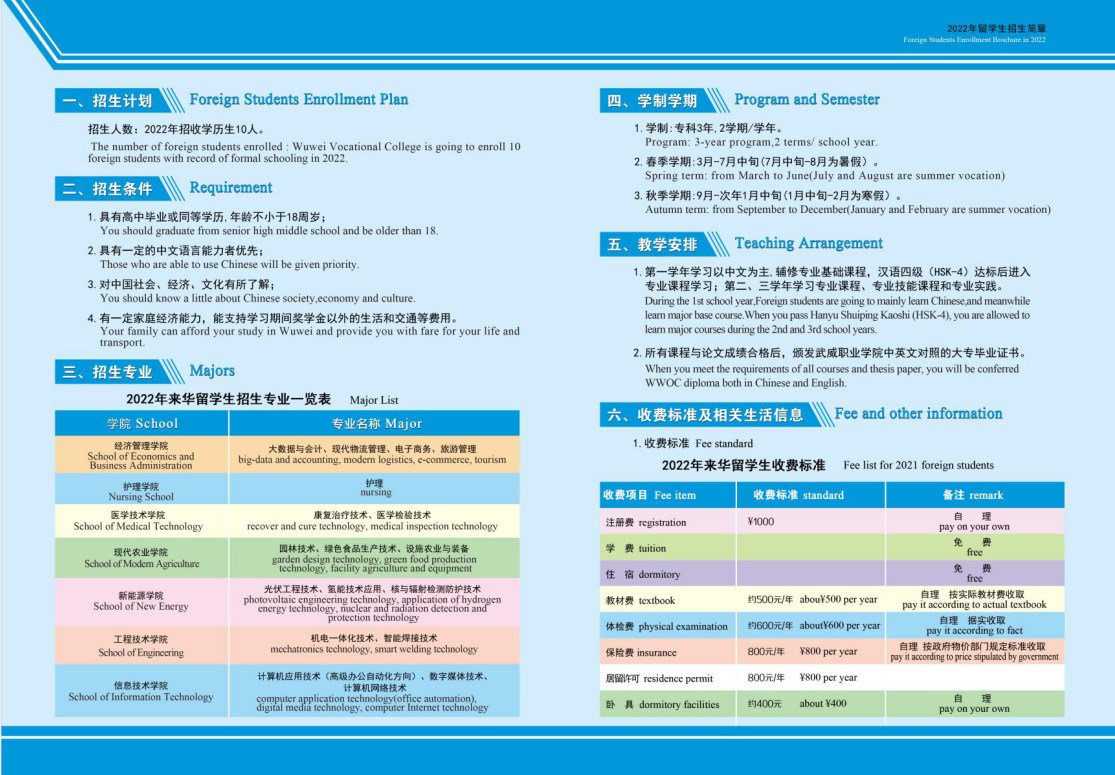 武威職業(yè)學(xué)院2022年留學(xué)生招生簡章