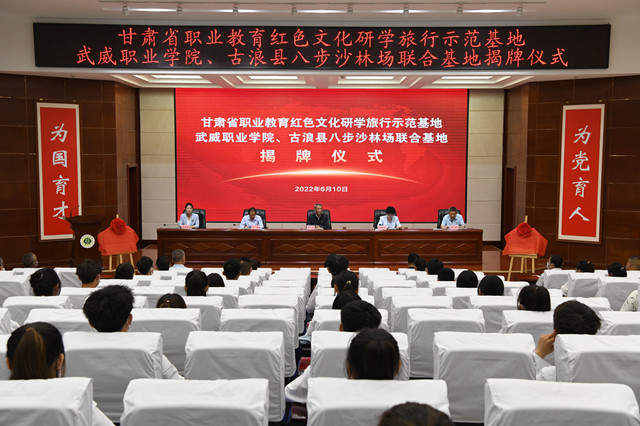 首批甘肅省職業(yè)教育紅色文化研學(xué)旅行示范基地——武威職業(yè)學(xué)院 古浪縣八步沙林場(chǎng)聯(lián)合基地揭牌儀式隆重舉行