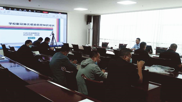 演練結(jié)束后,甘肅省武威腫瘤醫(yī)院感染管理科疫情防控專家在能源科技樓811會(huì)議室對(duì)學(xué)校疫情防控領(lǐng)導(dǎo)小組全體成員進(jìn)行疫情防控知識(shí)培訓(xùn),全體輔導(dǎo)員、班主任,醫(yī)務(wù)室全體人員及其他相關(guān)人員通過在線視頻學(xué)習(xí),培訓(xùn)會(huì)議由學(xué)校副校長(zhǎng)王永緒主持。