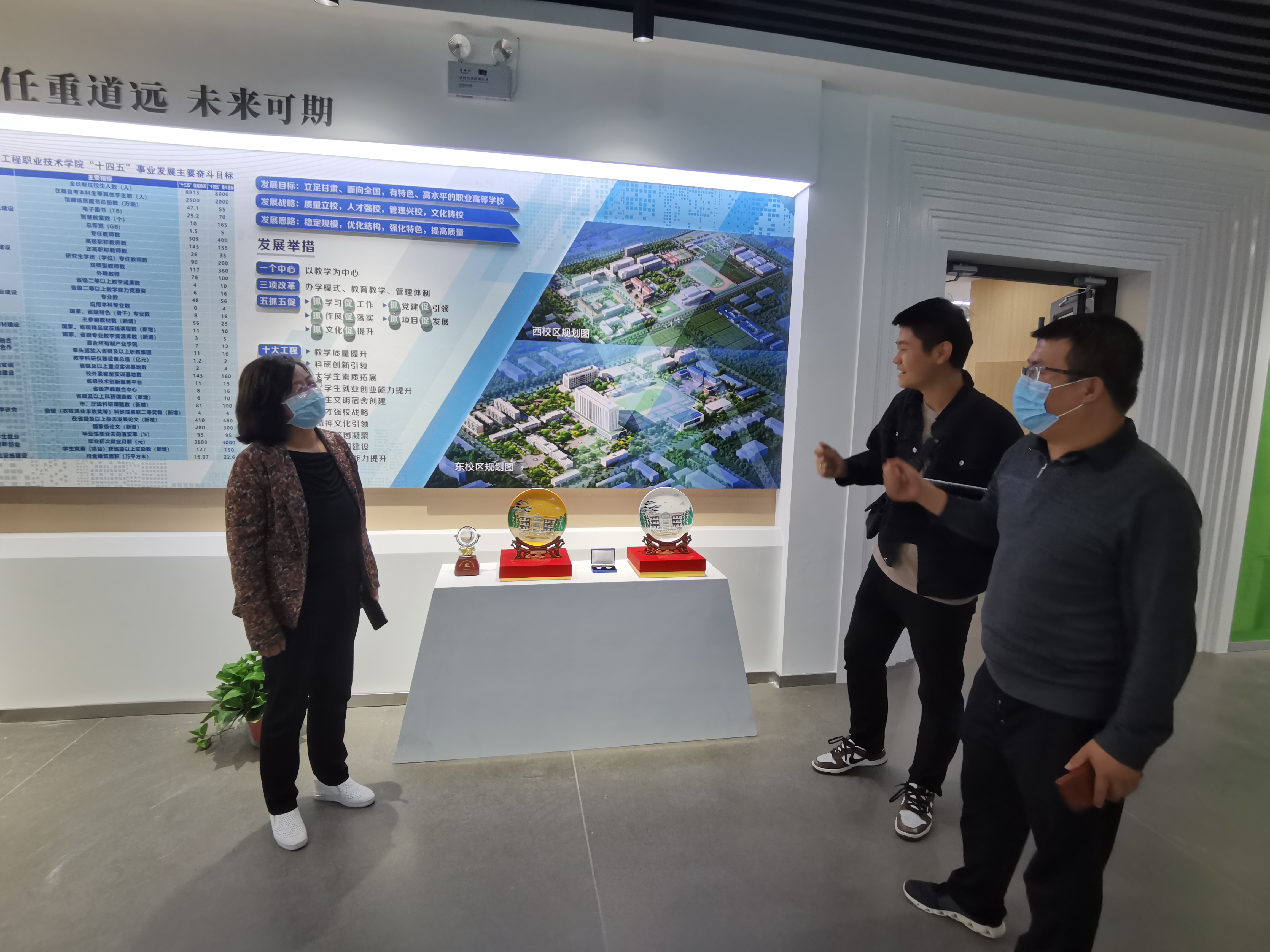 為全面推進“雙高計劃”學(xué)校建設(shè),提升圖書館服務(wù)水平,營造“書香校園”,將圖書館打造成人性化、智能化、專業(yè)化的綠色學(xué)習空間。近日,圖書館館長楊如松、副館長蔡濟眾、館員楊建盛三人到甘肅省畜牧工程職業(yè)技術(shù)學(xué)院圖書館考察學(xué)習,在甘肅省畜牧工程職業(yè)技術(shù)學(xué)院圖書館館長解玉寶陪同下,參觀了該校圖書館讀書吧、校史館、黨史館、“挑戰(zhàn)杯”獲獎作品展覽館等處,解玉寶講解了該館設(shè)計理念及建設(shè)過程中的側(cè)重點和展示重點。楊如松就現(xiàn)在圖書館裝發(fā)展趨勢、圖書館管理辦法、學(xué)生借閱量等實際問題同解玉寶進行了相互交流。