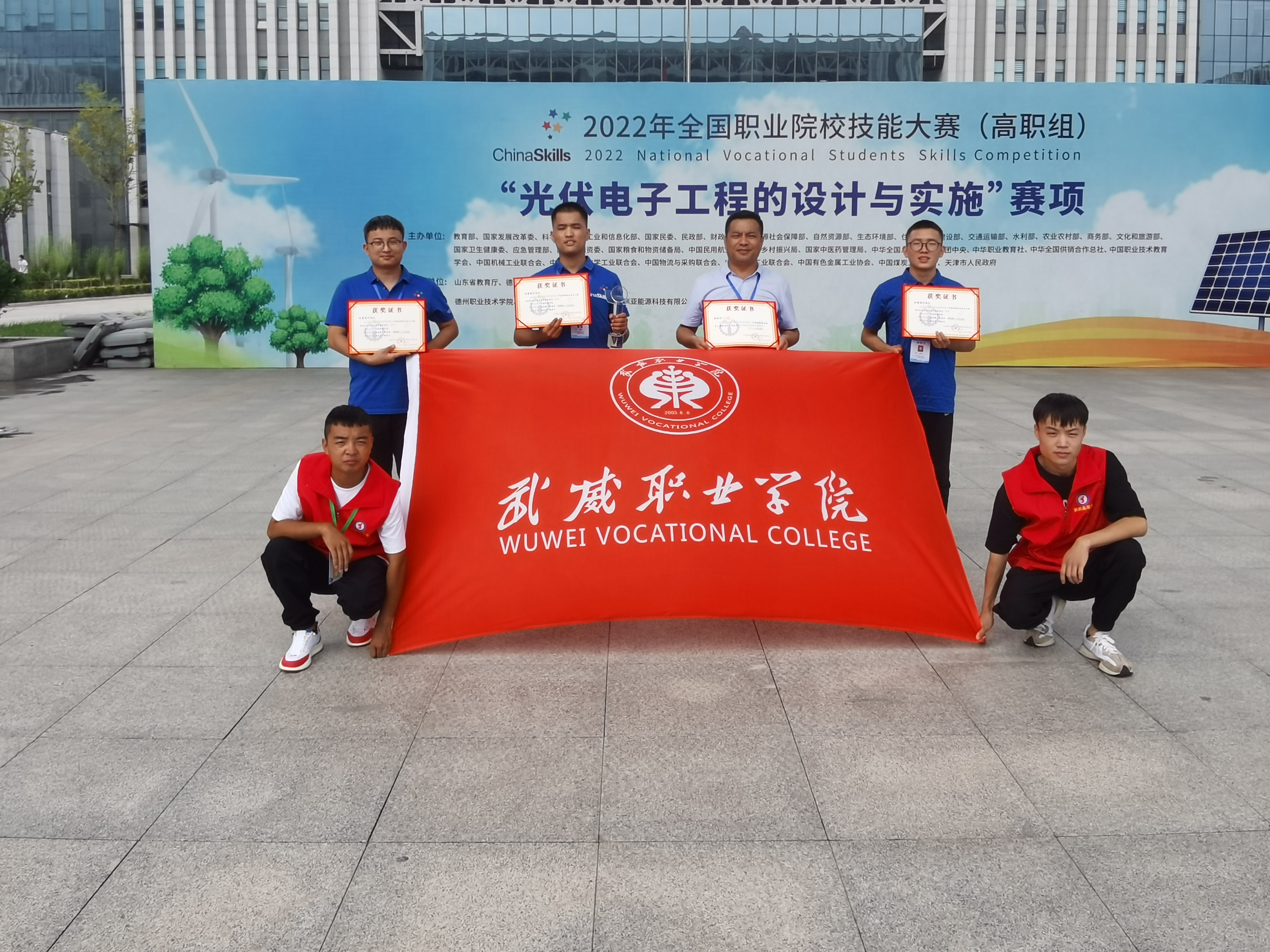 8月22日至23日,由教育部、工業(yè)和信息化部、財政部、人力資源和社會保障部、住房和城鄉(xiāng)建設(shè)部、交通運(yùn)輸部、農(nóng)業(yè)部等部委主辦的2022年全國職業(yè)院校技能大賽高職組“光伏電子工程的設(shè)計與實施”賽項在山東德州職業(yè)技術(shù)學(xué)院舉辦,來自全國30個省(市)、自治區(qū)的55支代表隊參加了比賽。武威職業(yè)學(xué)院中科低碳新能源技術(shù)學(xué)院高東興、富金強(qiáng)、趙寶林三名同學(xué)代表甘肅省參加本次大賽,最終榮獲國賽一等獎,完全實現(xiàn)了賽前確定的“穩(wěn)二爭一”的目標(biāo)任務(wù)。這是學(xué)校參加全國職業(yè)院校技能大賽以來首次獲得國賽一等獎,實現(xiàn)了學(xué)校該賽項國獎“零”的突破,開啟了學(xué)校專業(yè)建設(shè)高質(zhì)量發(fā)展新征程。本次優(yōu)異成績的取得充分展現(xiàn)了學(xué)校“崗課賽證”相融通的綜合育人效果,充分體現(xiàn)了學(xué)校深化“三教改革”推動高質(zhì)量發(fā)展的成效,充分彰顯了學(xué)校實施“雙高計劃”“技能甘肅”“提質(zhì)培優(yōu)”等重大項目建設(shè)推進(jìn)高水平發(fā)展的成效,本次競賽成績是對學(xué)校新能源類專業(yè)建設(shè)的肯定,也是武威乃至全省職業(yè)教育發(fā)展的試金石和榮光。