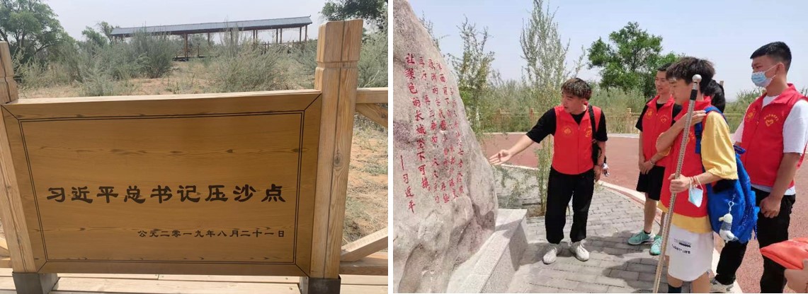 在兩山實(shí)踐基地負(fù)責(zé)人的指引下,我們參觀了習(xí)近平總書(shū)記曾經(jīng)到達(dá)過(guò)八步沙參與壓沙的目的地,認(rèn)真學(xué)習(xí)了習(xí)近平總書(shū)記在八步沙的講話精神,深刻領(lǐng)悟到了習(xí)近平總書(shū)記號(hào)召大家要弘揚(yáng)八步沙“六老漢”困難面前不低頭,敢把沙漠變綠洲的當(dāng)代愚公精神,在今后,我們將把這種精融入到實(shí)踐當(dāng)中,不負(fù)青春,不負(fù)韶華積極投身于祖國(guó)建設(shè)中。