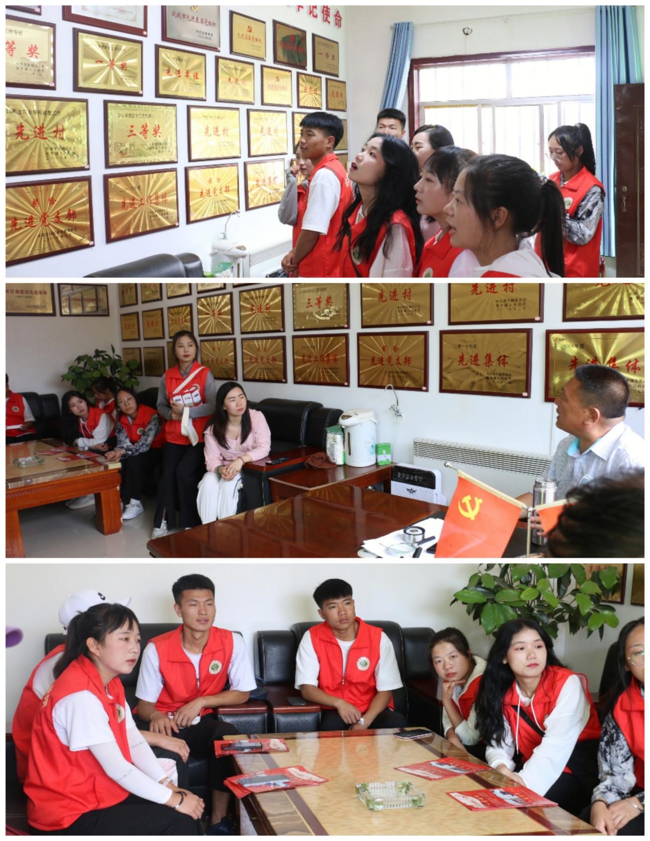 走進(jìn)楊斌書記的辦公室,全體成員的眼球都被掛滿墻面的那數(shù)十塊獎牌所吸引。從縣區(qū)到市級到省級再到國家級,每一塊獎牌都承載著上莊村全體村民的努力和汗水,凝結(jié)著楊斌書記和村干部的勇氣和決心。