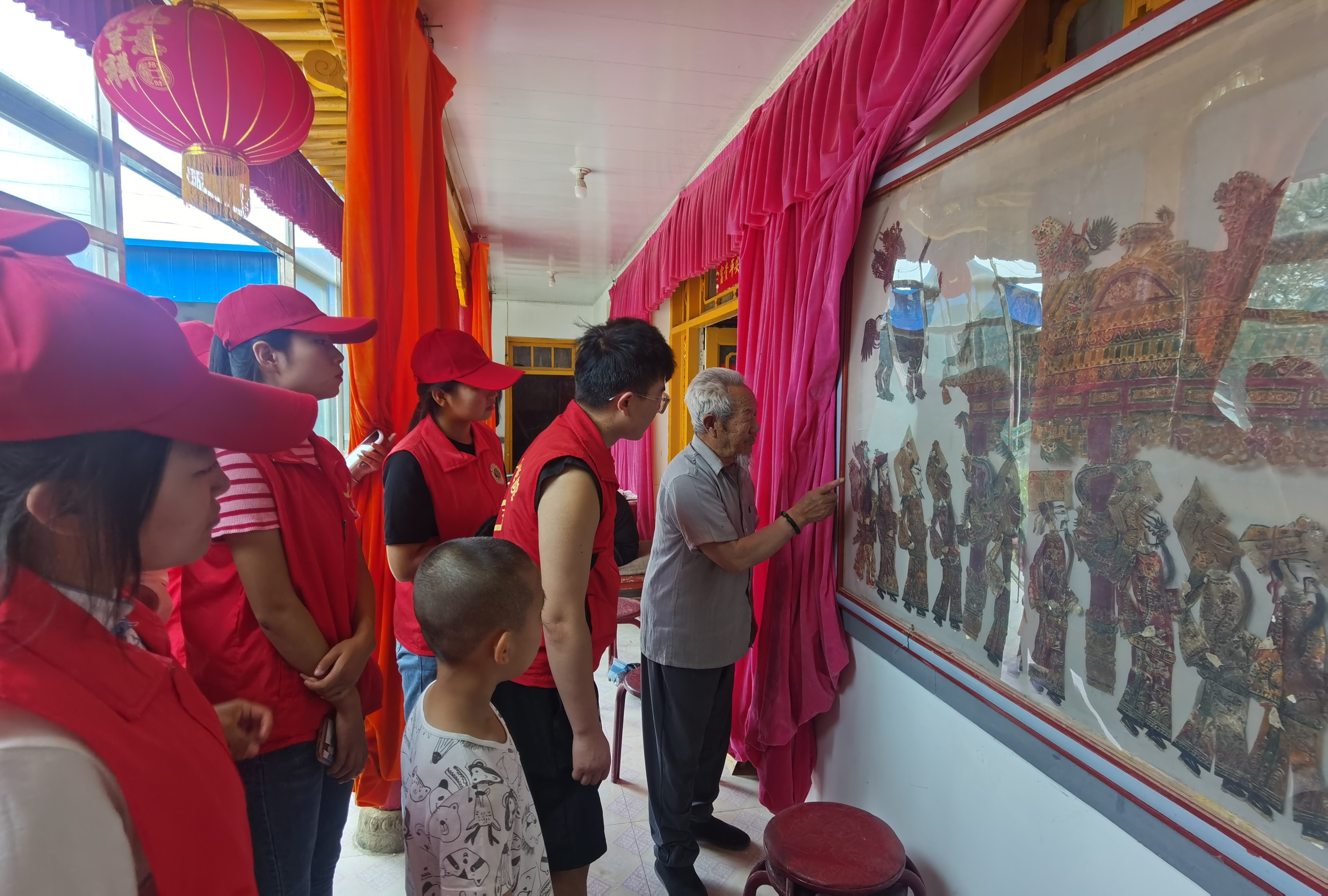 隊(duì)員們目不轉(zhuǎn)睛地被幕布上惟妙惟肖的人物形象和流暢的動(dòng)作所深深吸引。表演結(jié)束后,隊(duì)員們意猶未盡,圍在馬老身邊請(qǐng)教皮影的制作方法以及表演皮影的技巧,在他的指導(dǎo)下,體驗(yàn)皮影人物走路、翻身、翻跟斗等動(dòng)作展示過程花樣百出、妙趣橫生,更加激發(fā)了實(shí)踐團(tuán)隊(duì)員對(duì)學(xué)習(xí)傳承傳統(tǒng)文化的興趣和動(dòng)力。