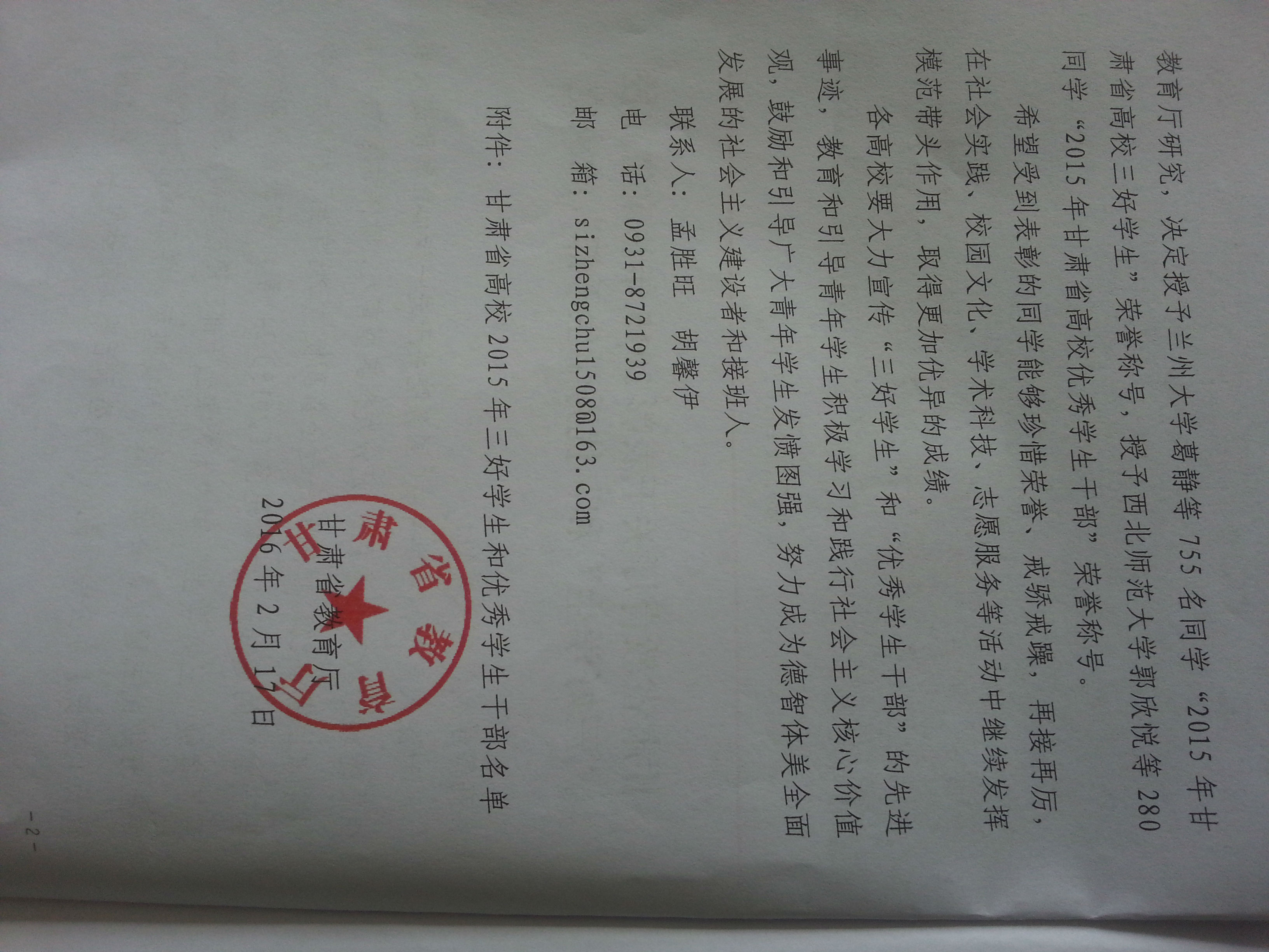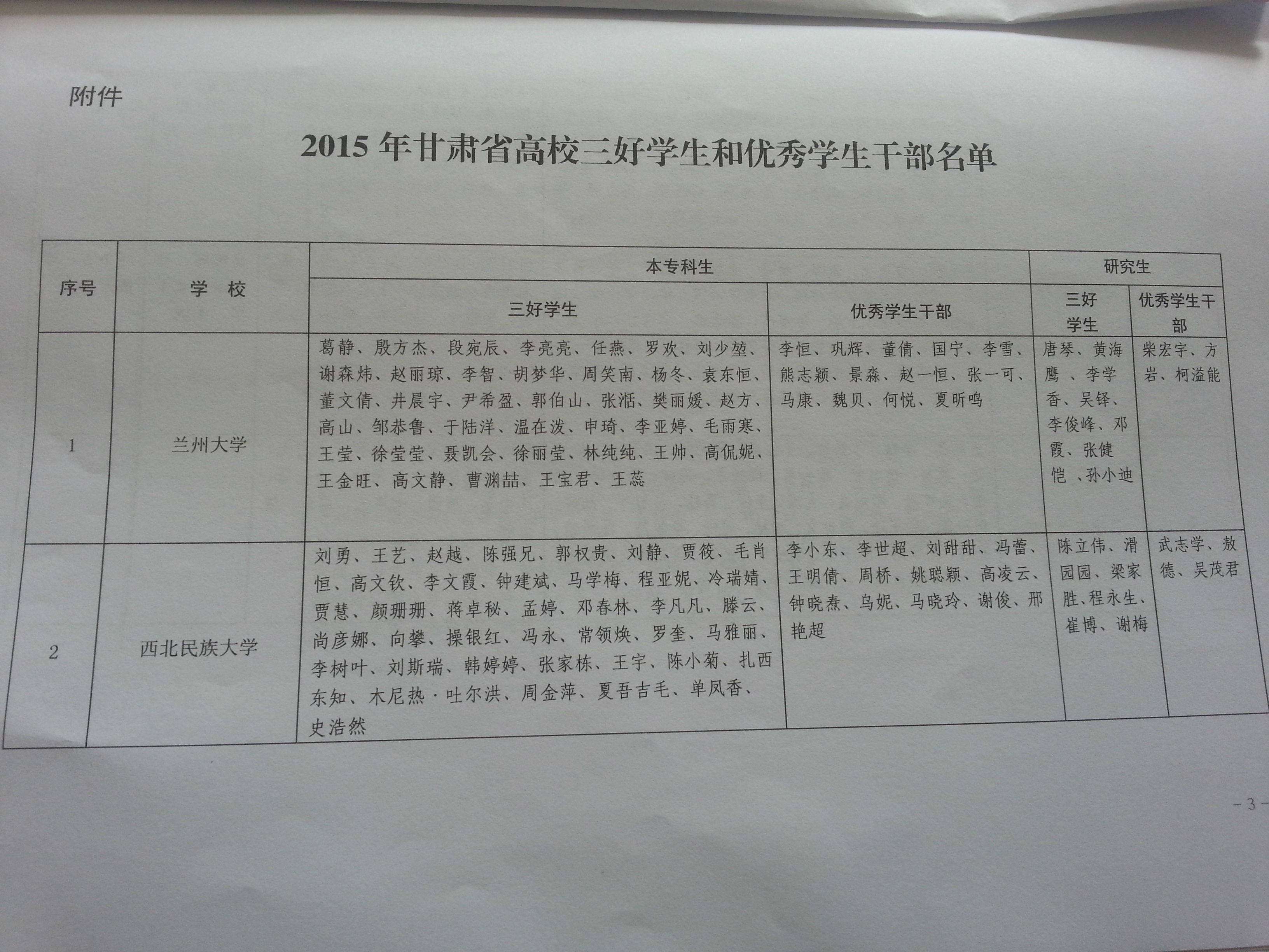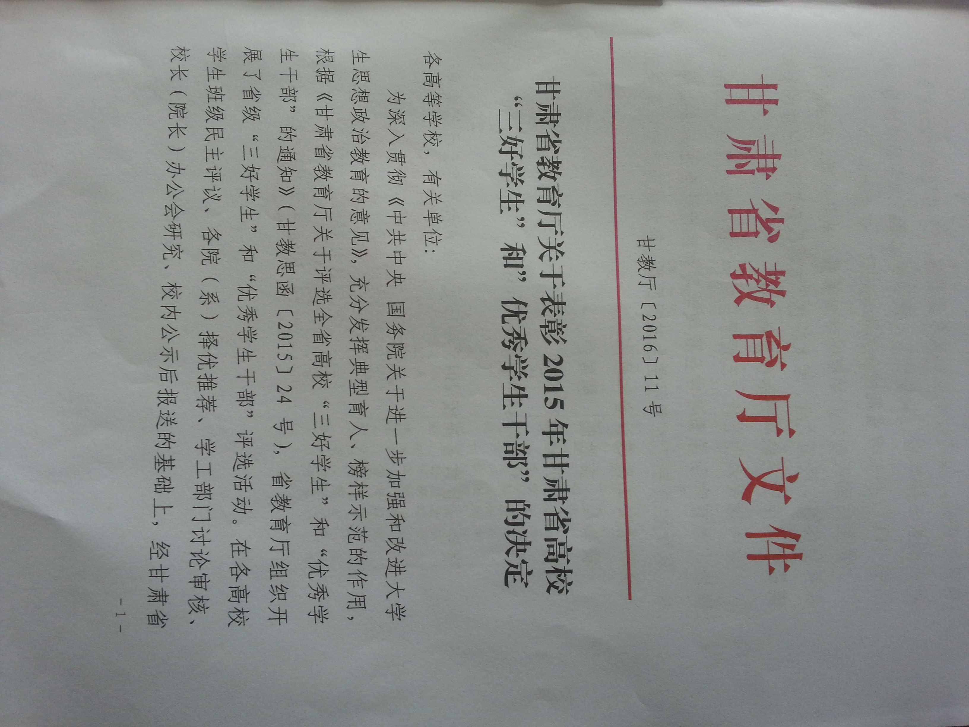 甘肅省教育廳關(guān)于表彰2015年甘肅省高?!叭脤W生”和“優(yōu)秀學生干部”的決定