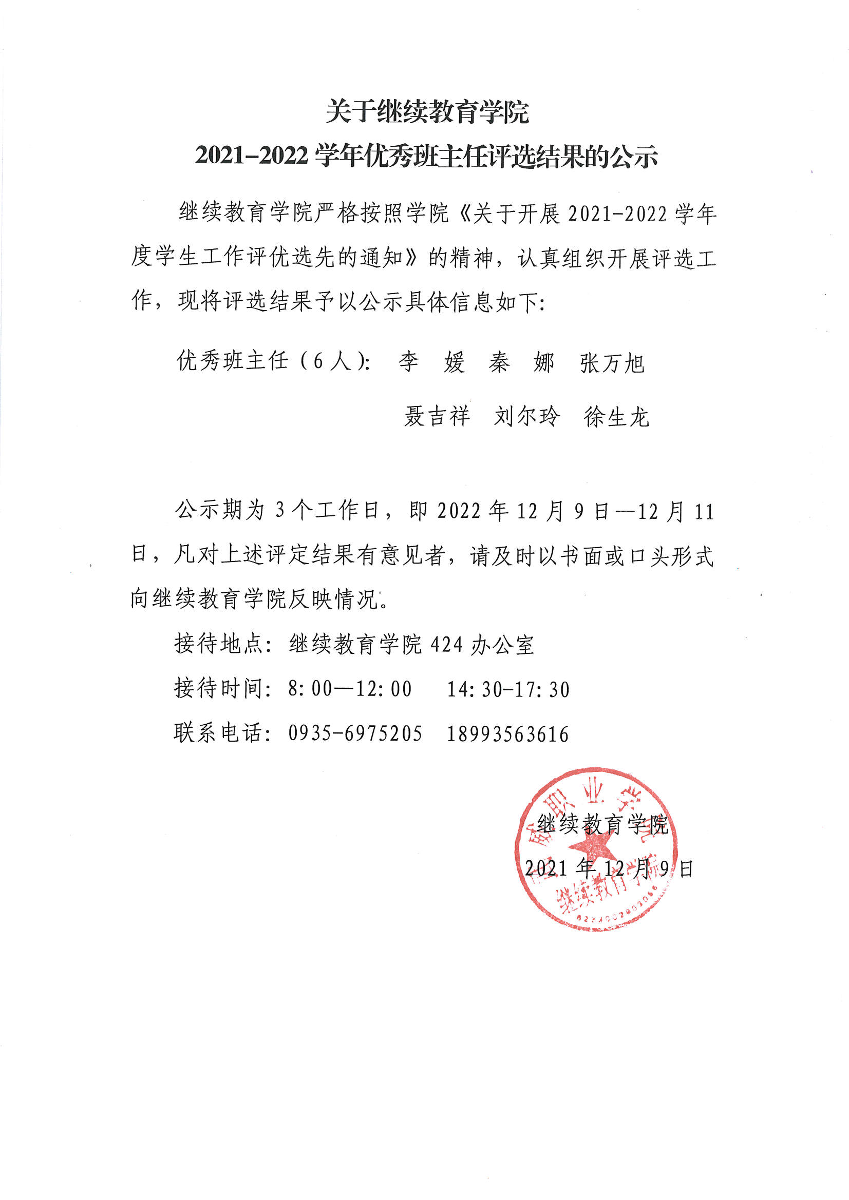 繼續(xù)教育學(xué)院關(guān)于2021-2022學(xué)年優(yōu)秀班主任評選結(jié)果的公示