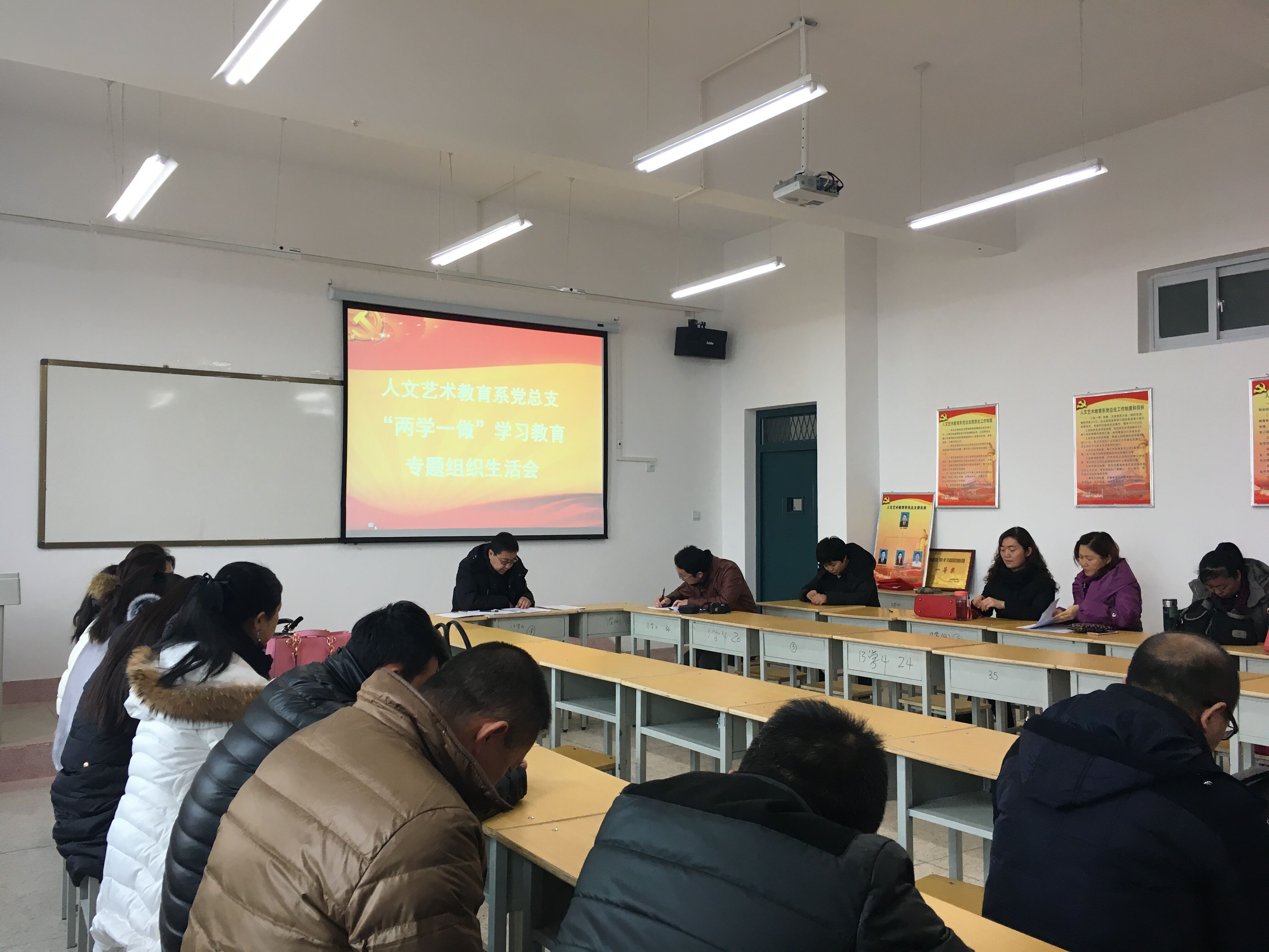 1月10日下午,人文藝術(shù)教育系黨總支在勵(lì)勤樓403黨員活動(dòng)室召開了“兩學(xué)一做”學(xué)習(xí)教育專題組織生活會(huì)和民主評(píng)議黨員大會(huì),會(huì)議由系黨總支書記胡靜峰同志主持,全體黨員及部分群眾參加了會(huì)議。