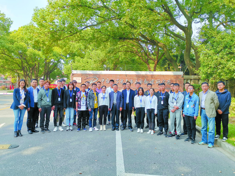 2019年11月,武威職業(yè)學(xué)院黨委書記趙明(左九)、黨委副書記翟存祥(左十)把第二屆頂崗實(shí)習(xí)生送到應(yīng)物所。左一為米麗娟,前排右一為楊存忠。(受訪者供圖)