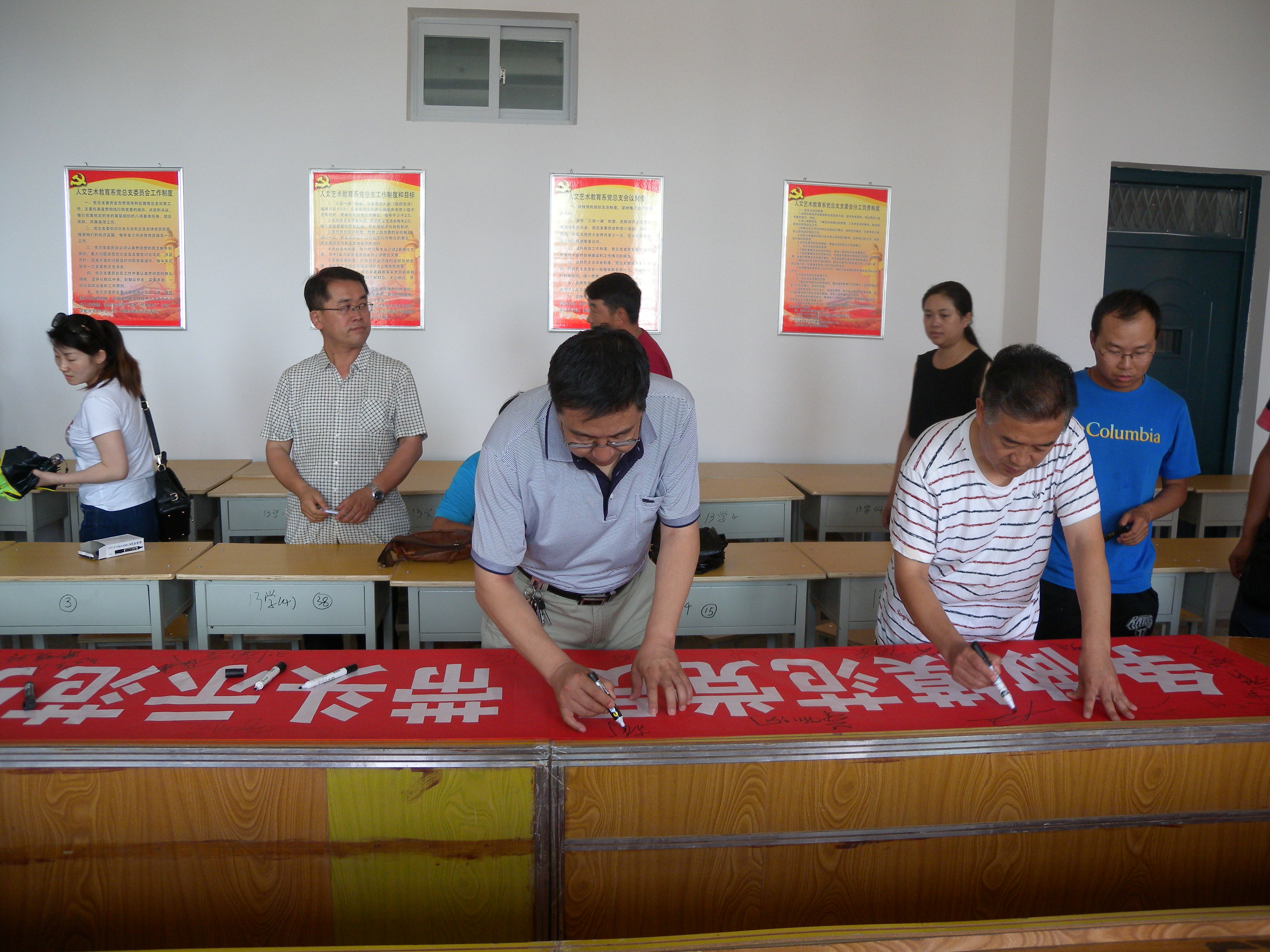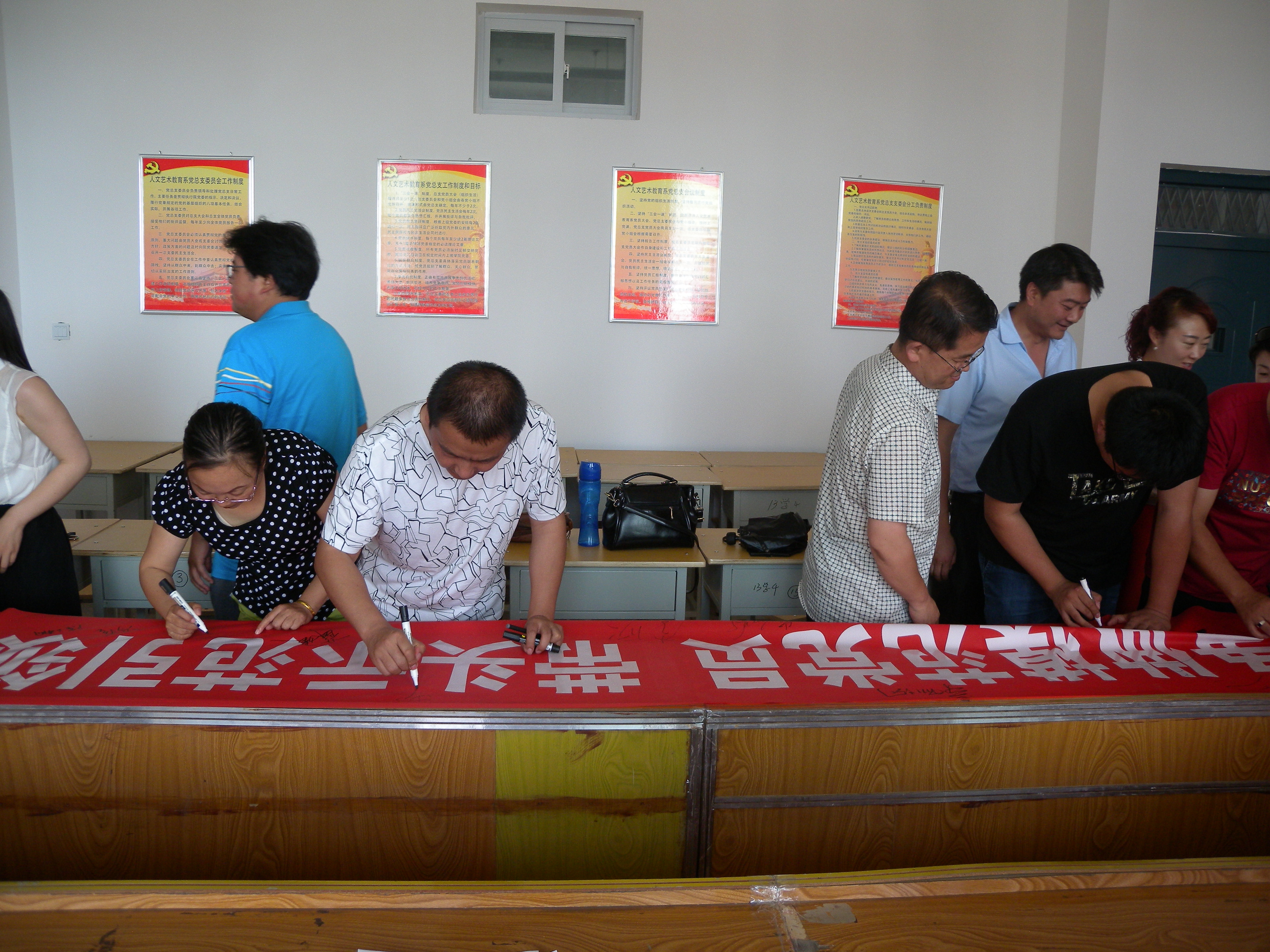 根據(jù)學(xué)院黨委慶“七一”系列活動(dòng)方案,人文藝術(shù)教育系黨總支于7月4日下午在勵(lì)勤樓403黨員活動(dòng)室開展了“爭(zhēng)做模范黨員,帶頭示范引領(lǐng)” 師生黨員簽名活動(dòng)。