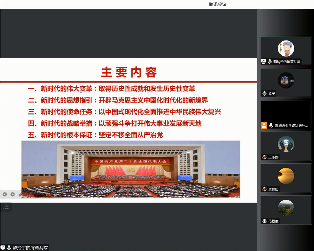 12月23日,按照學(xué)校黨委工作部署,教學(xué)管理第二黨支部組織開展黨的二十大精神宣講宣傳活動(dòng),會(huì)議由黨支部書記董鵬主持,邀請了學(xué)校黨的二十大精神宣講團(tuán)成員魏玲,支部全體黨員和入黨積極分子通過網(wǎng)絡(luò)視頻參加學(xué)習(xí),會(huì)議精神宣傳至支部全體人員。