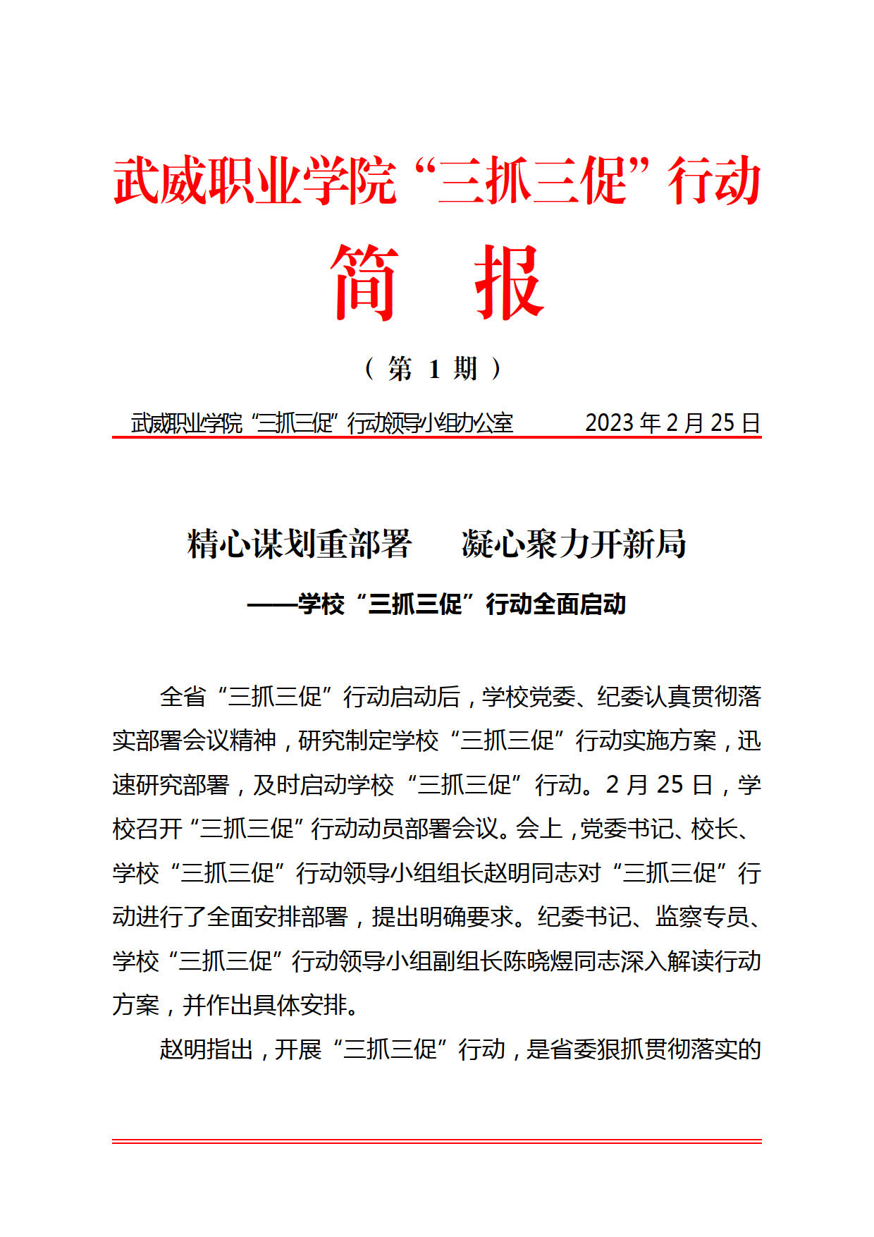 武威職業(yè)學(xué)院“三抓三促”行動(dòng)簡報(bào)第1期