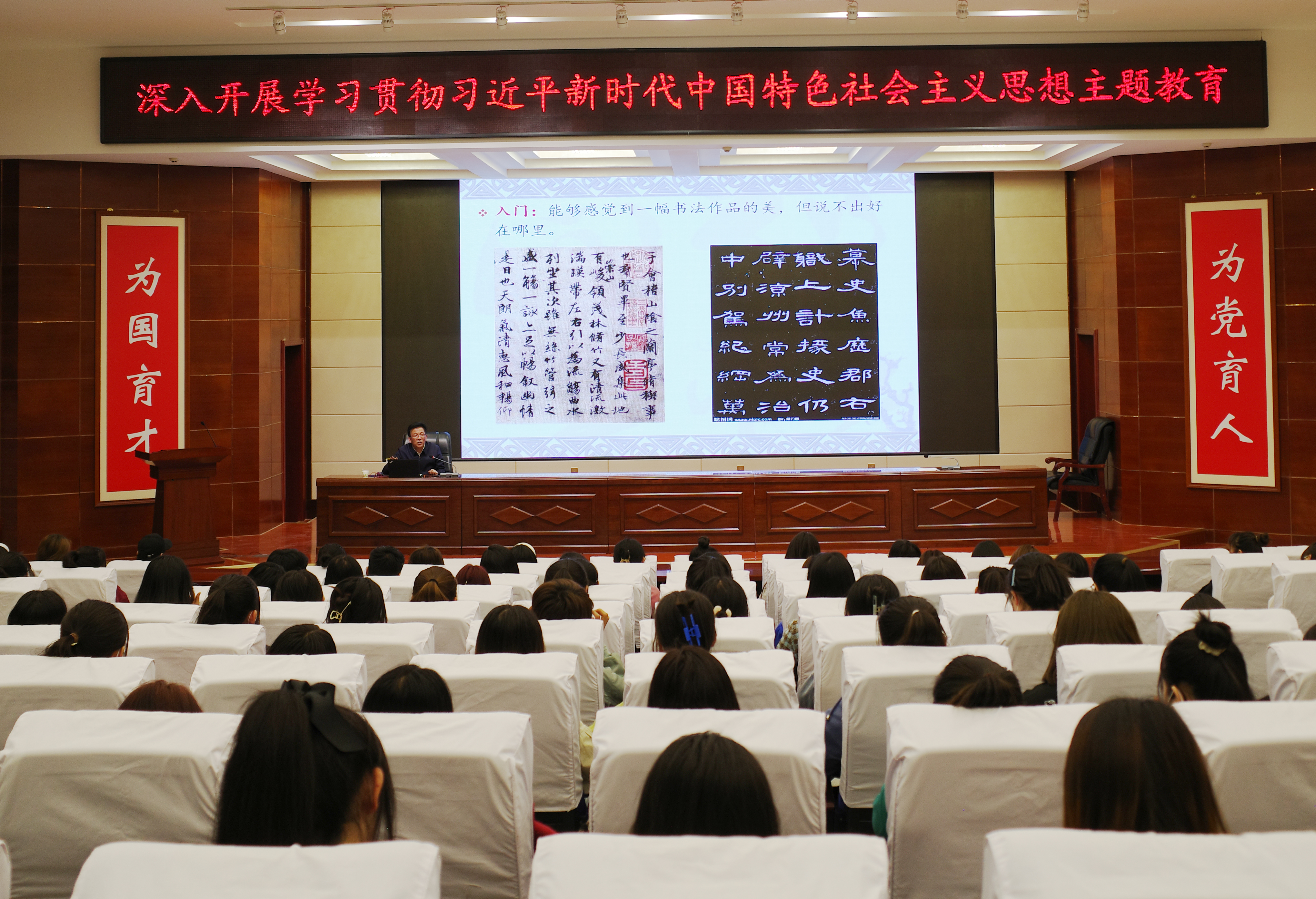 活動(dòng)中,齊澤山在菁英廳為師生做了題為“如何欣賞書(shū)法作品”專題講座,他介紹了中國(guó)書(shū)法藝術(shù)的起源、傳統(tǒng)、特點(diǎn),以《蘭亭序》《曹全碑》等多幅經(jīng)典書(shū)法作品為例,深入解析了書(shū)法藝術(shù)的魅力與內(nèi)涵,清晰呈現(xiàn)了中國(guó)書(shū)法悠久的歷史脈絡(luò),使師生們對(duì)中國(guó)書(shū)法藝術(shù)的起源與發(fā)展有了更加深刻地理解。講座引經(jīng)據(jù)典、風(fēng)趣幽默、親切自然,讓師生在輕松愉悅的氛圍中升華了對(duì)書(shū)法藝術(shù)的審美感受。師生們紛紛表示,此次講座是一次難得的學(xué)習(xí)機(jī)會(huì),受益匪淺,對(duì)中國(guó)書(shū)法藝術(shù)有了更深入、更全面的了解。