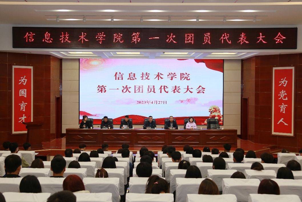 2023年4月27日晚,信息技術學院第一次團員代表大會暨學生代表大會在菁英廳隆重召開。學院黨支部、團委主要負責人及師生代表出席了大會,會議由李京靜主持。