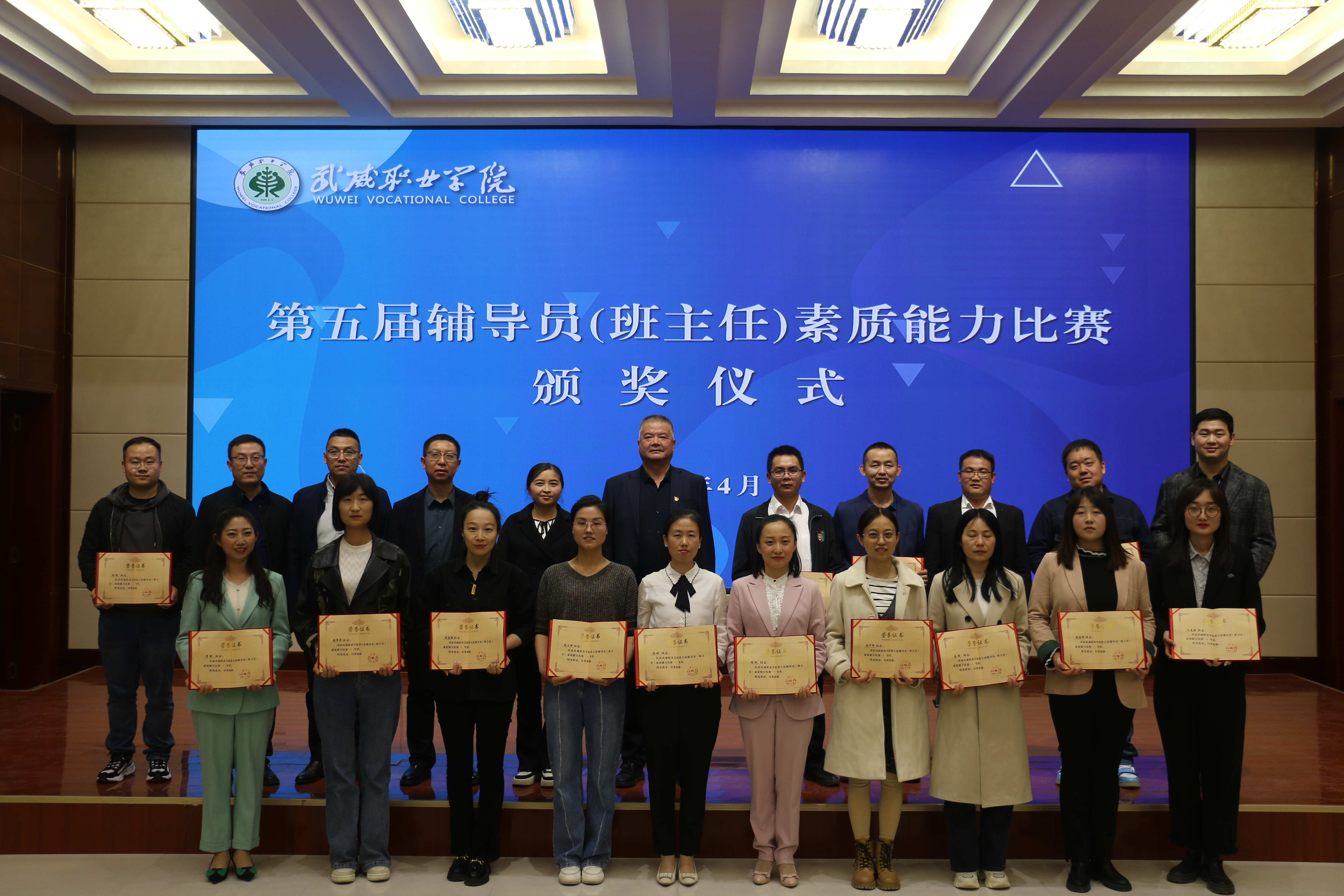 4月18日至20日,武威職業(yè)學(xué)院第五屆輔導(dǎo)員(班主任)素質(zhì)能力比賽在菁英廳成功舉辦。決賽現(xiàn)場,學(xué)院黨委委員、副校長王守云出席活動(dòng)并為獲獎(jiǎng)選手頒獎(jiǎng)。