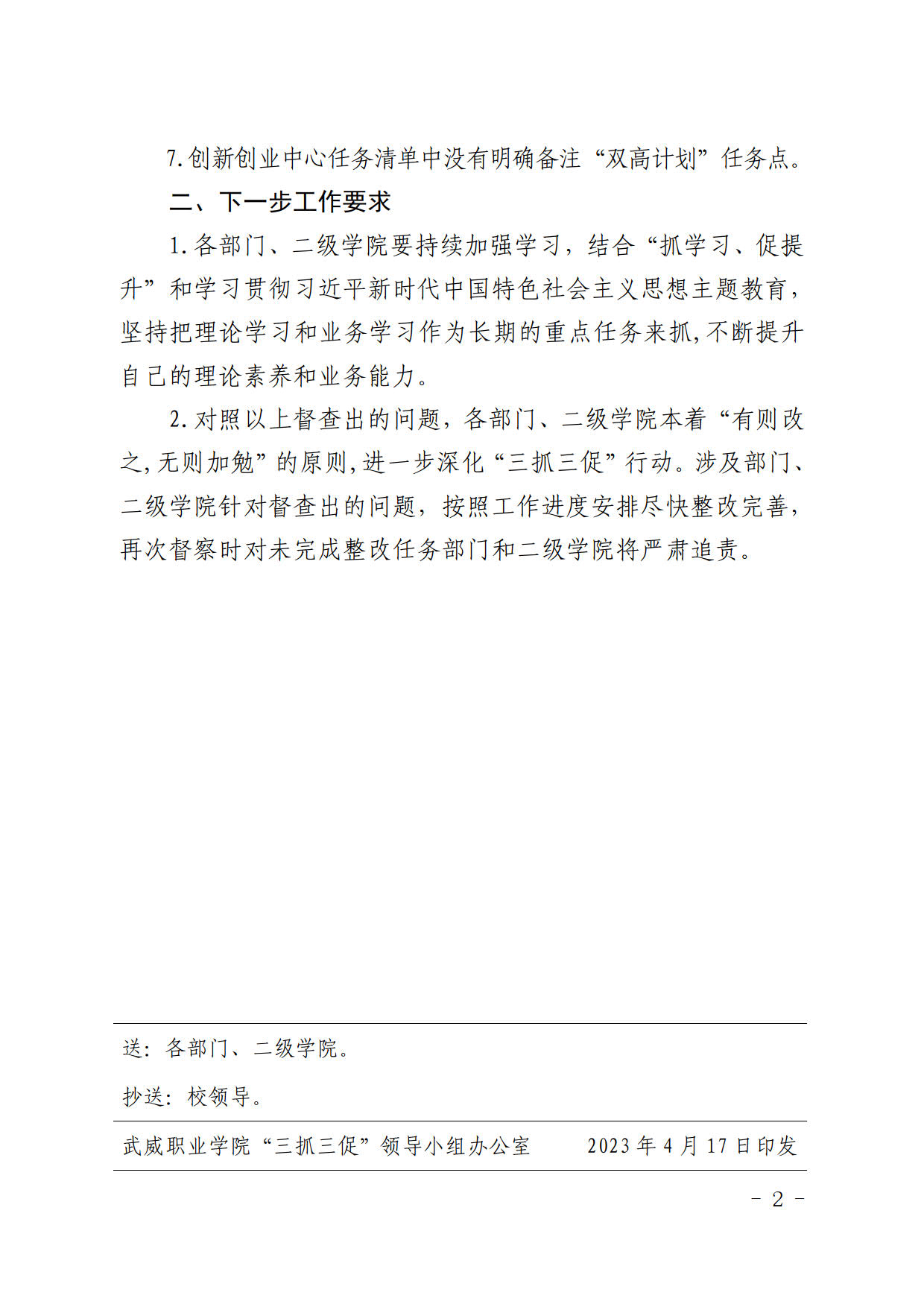 武威職業(yè)學(xué)院“三抓三促”行動(dòng)督查通報(bào)( 二 )