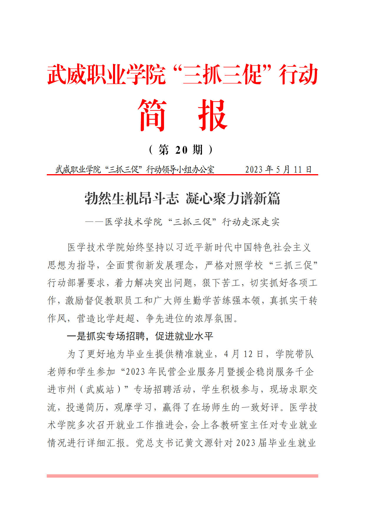 簡報第20期:勃然生機(jī)昂斗志 凝心聚力譜新篇——醫(yī)學(xué)技術(shù)學(xué)院“三抓三促”行動走深走實