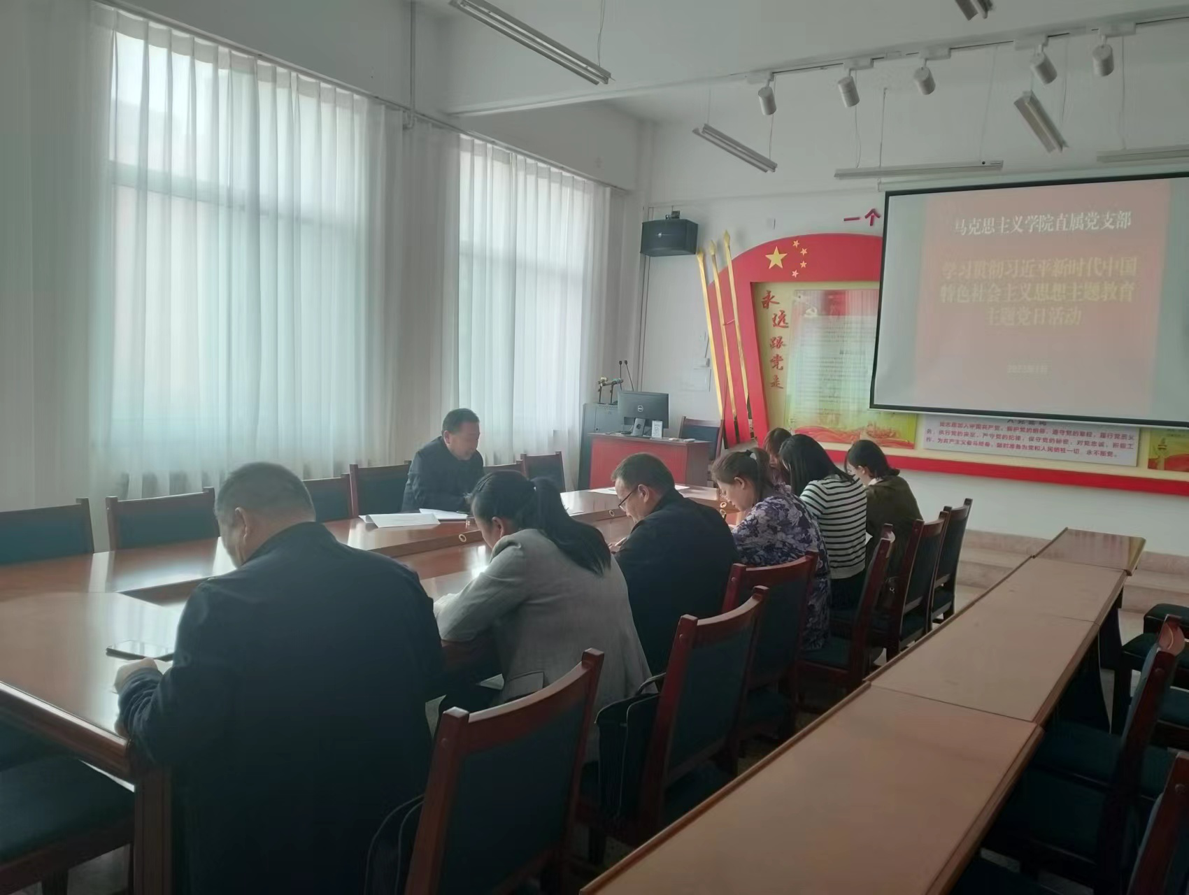 5月29日,馬克思主義學(xué)院黨支部開(kāi)展學(xué)習(xí)貫徹習(xí)近平新時(shí)代中國(guó)特色社會(huì)主義思想主題教育專題黨課。支部書(shū)記劉心以《學(xué)習(xí)貫徹習(xí)近平總書(shū)記在學(xué)校思想政治理論課教師座談會(huì)上的重要講話精神 發(fā)揮馬克思主義學(xué)院主陣地作用》為題講授主題教育專題黨課,支部全體黨員參加會(huì)議。