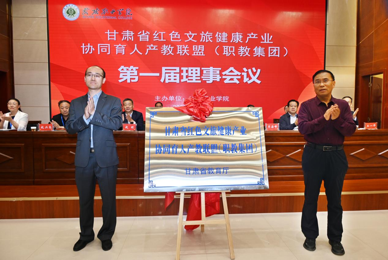 省教育廳職業(yè)教育與成人教育處二級調(diào)研員胡晶宣讀了《甘肅省紅色文旅健康產(chǎn)業(yè)協(xié)同育人產(chǎn)教聯(lián)盟(職教集團)的批復》,并與武威市教育局副局長李海峰共同為《甘肅省紅色文旅健康產(chǎn)業(yè)協(xié)同育人產(chǎn)教聯(lián)盟(職教集團)》揭牌。