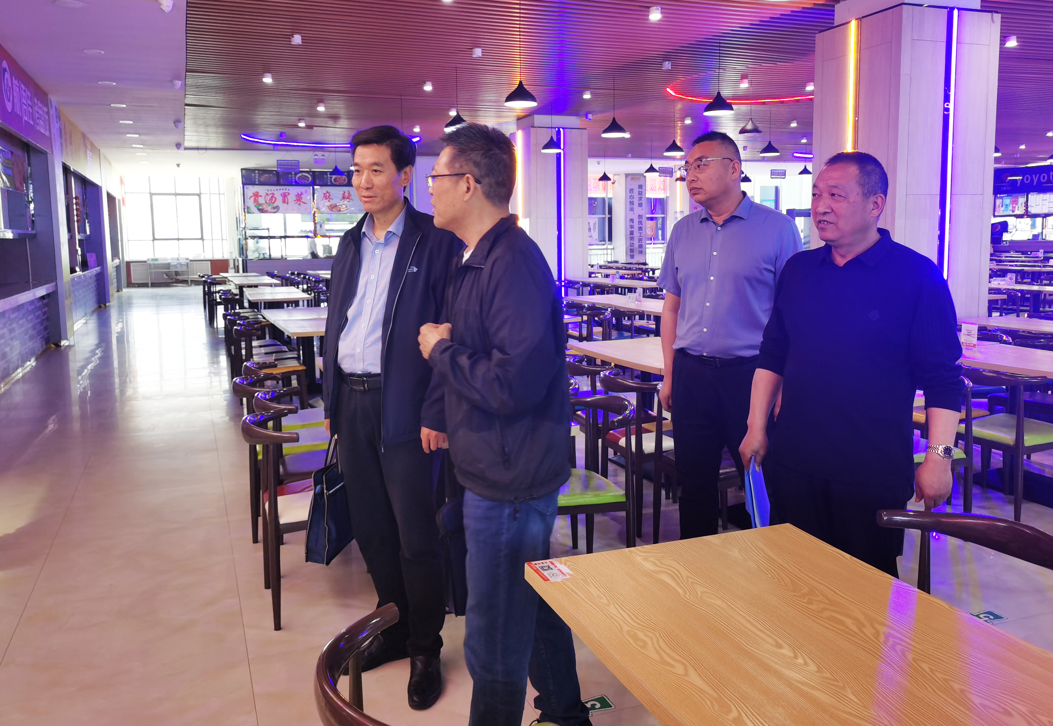 專題調(diào)研組在二號(hào)學(xué)生食堂就食堂規(guī)范化管理、食材采購存放、加工售賣、餐具消毒、環(huán)境衛(wèi)生、飯菜價(jià)格、“互聯(lián)網(wǎng)+明廚亮灶”等進(jìn)行了查看。省委主題教育第十巡回指導(dǎo)組對(duì)此次調(diào)研主題及學(xué)校食堂保供穩(wěn)價(jià)、就餐環(huán)境等工作給予了充分肯定,同時(shí)也提出了意見建議。一是要及時(shí)消除安全隱患,維修翹邊、下沉吊頂;二是提供多層次餐飲服務(wù),滿足不同地域?qū)W生的口味需求;三是加強(qiáng)細(xì)節(jié)管理,提升管理水平。為從業(yè)人員配發(fā)透明餐飲口罩,在確保安全衛(wèi)生的前提下,提升從業(yè)人員工作舒適度。四是要厲行節(jié)約,持續(xù)倡導(dǎo)光盤行動(dòng),杜絕舌尖上的浪費(fèi)。