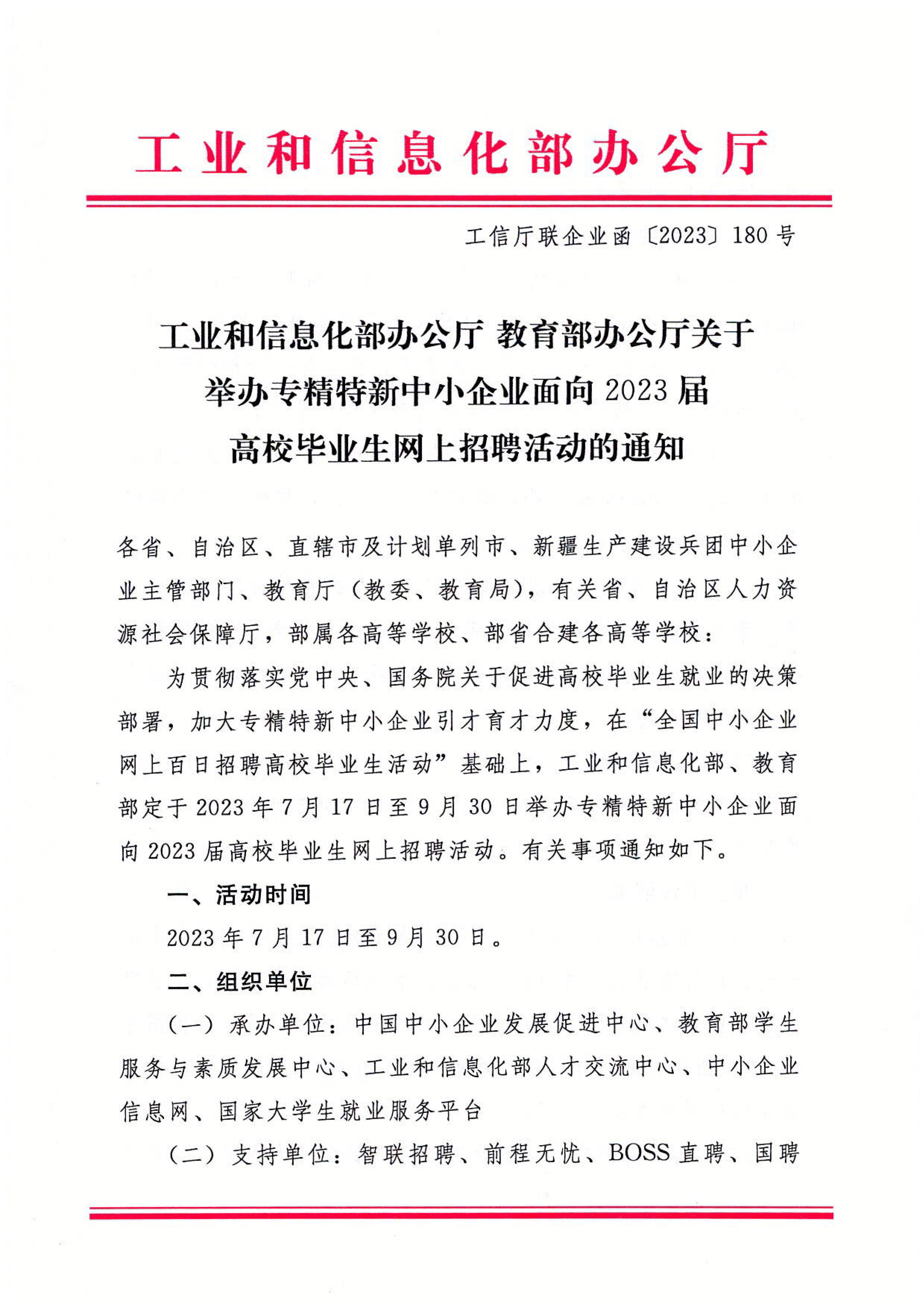 關于舉辦專精特新中小企業(yè)面向2023屆高校畢業(yè)生網上招聘活動的通知