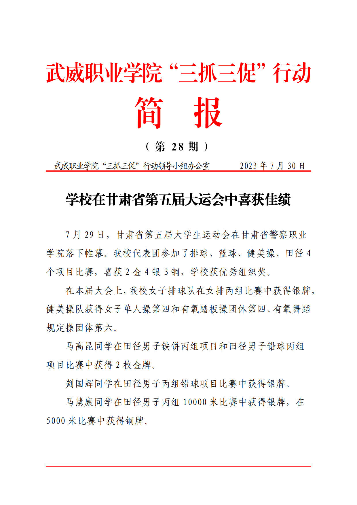 簡報第28期:學校在甘肅省第五屆大運會中喜獲佳績