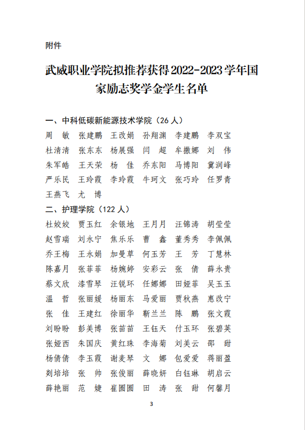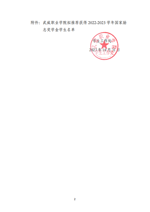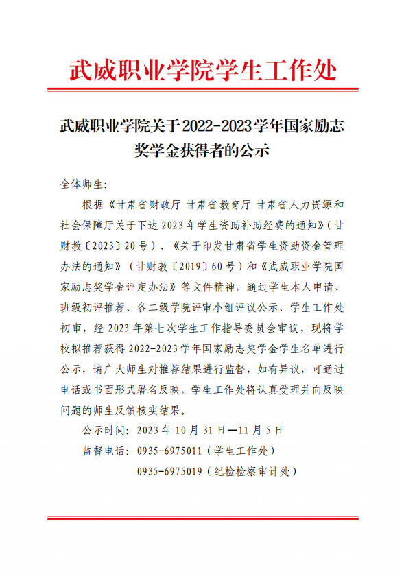 武威職業(yè)學(xué)院關(guān)于2022-2023學(xué)年國家勵(lì)志獎(jiǎng)學(xué)金候選人的公示