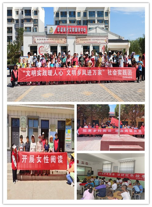 “文明實踐暖人心 文明鄉(xiāng)風進萬家”社會實踐團深入涼州區(qū)高壩鎮(zhèn)、長城鎮(zhèn)、永昌鎮(zhèn)、吳家井鎮(zhèn),古浪縣綠洲小鎮(zhèn),武威市社會福利院等地開展“拓寬鄉(xiāng)村閱讀 提高閱讀質(zhì)量”“圖書漂流”“開展女性閱讀”四項主題活動,讓廣大農(nóng)民群眾親身感受文化的魅力,提升農(nóng)村女性文化素養(yǎng),用紅色事跡啟迪人生,促進農(nóng)村文化建設、道德建設、倫理建設和文明鄉(xiāng)風建設。