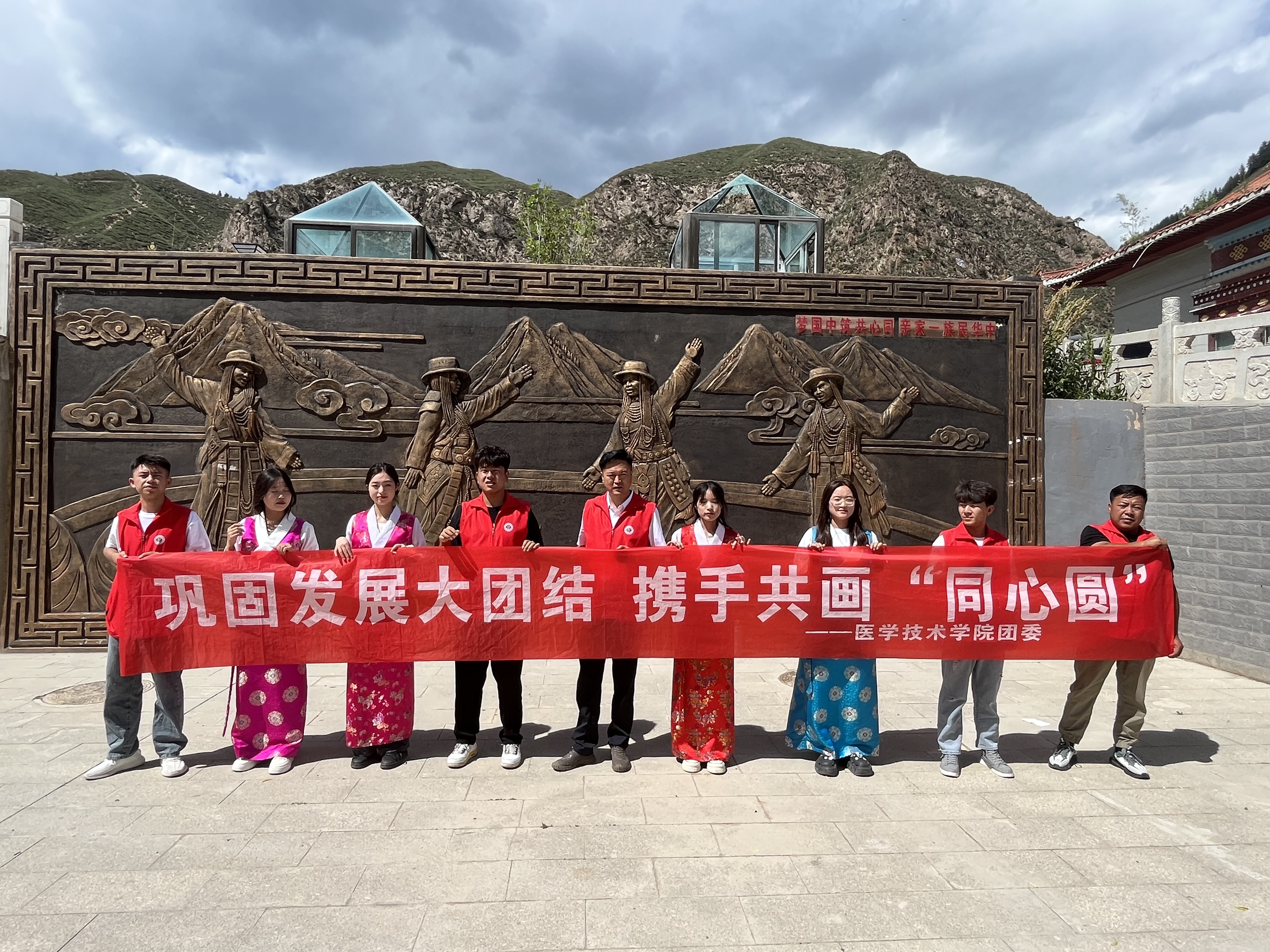 民族團結實踐團以習近平總書記關于民族工作重要論述,對甘肅重要講話和指示精神為根本遵循,深入天祝藏族自治縣天堂鎮(zhèn)、炭山嶺村,古浪縣泗水鎮(zhèn)等地,通過拜訪藏區(qū)在黨五十年老黨員、與藏族村民深入交流、舉辦民族團結書法繪畫展,發(fā)放民族團結宣傳手冊等多種形式活動,旨在引導當?shù)厝罕姌淞⒚褡遄院栏信c文化自信心,進一步鑄牢中華民族共同體意識。團隊成員通過了解民族團結進步呈現(xiàn)的新氣象,充分感知民族地區(qū)發(fā)生的新變化,立志當好民族團結進步的宣傳者、示范者和踐行者。