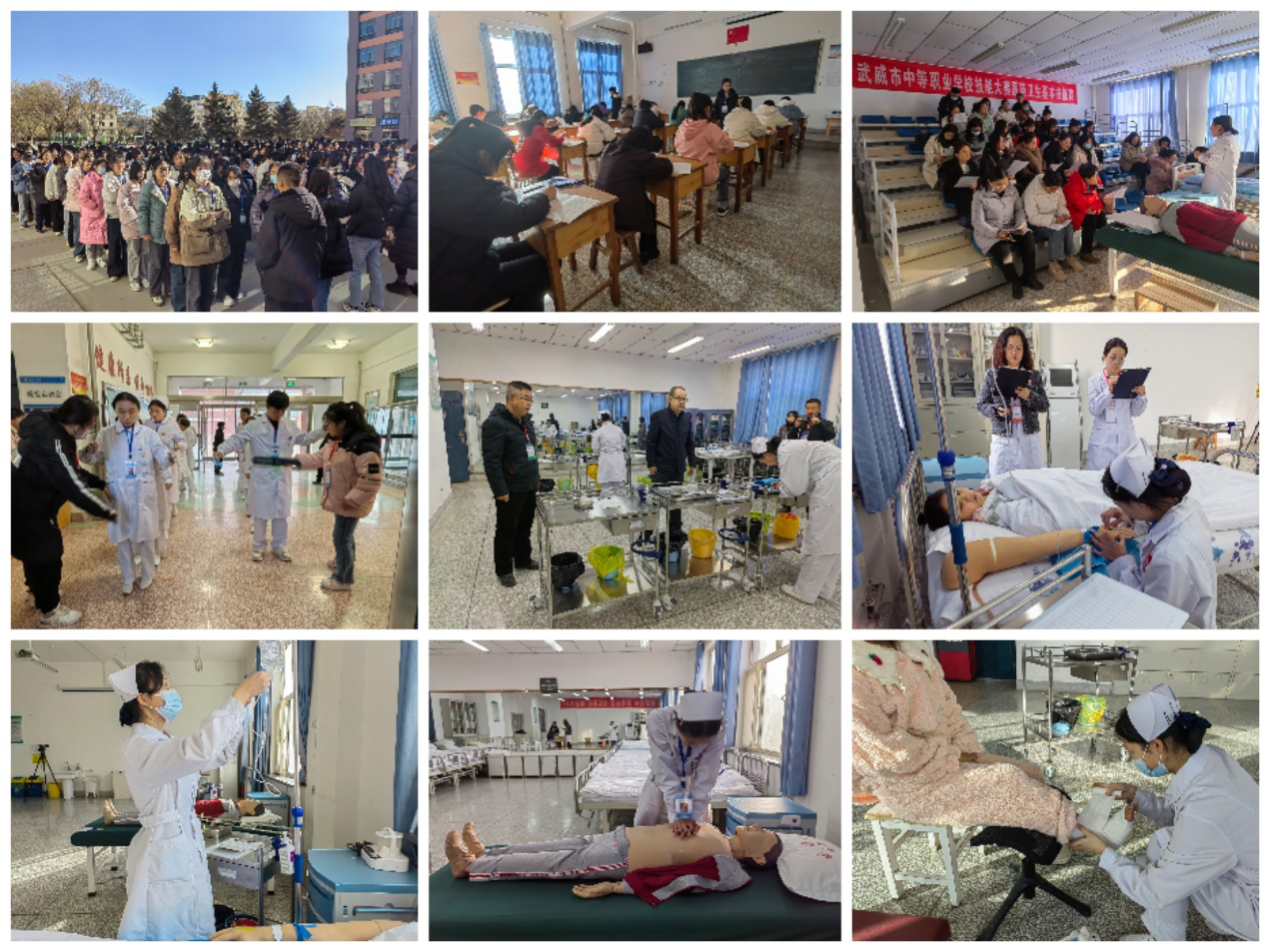 12月4日至8日,2024年武威市中等職業(yè)學(xué)校技能大賽護(hù)理技能賽項(xiàng)在學(xué)校卓行樓如期舉行,來(lái)自全市4所中等職業(yè)院校的675名選手參加了比賽。比賽設(shè)置理論考試和技能考試兩項(xiàng)內(nèi)容,技能考試包括心肺復(fù)蘇、靜脈輸液、右踝關(guān)節(jié)包扎三項(xiàng)護(hù)理技能操作。